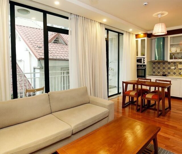 Discover a charming 2-bedroom apartment on Dang Thai Mai Street, Westlake. Feel at home with spacious living, including a large balcony and stylish design. This 80m2 unit features 2 bedrooms, 2 bathrooms, a combined living and dining area, and a modern open kitchen. Situated on a high floor in a serviced building with motorbike parking and an elevator, it’s conveniently located near shops, cafes, and markets. Fully furnished with wooden floors, the apartment is bathed in natural light through large windows, offering inclusive amenities like tap water, cable TV, Internet, and bi-weekly cleaning services.