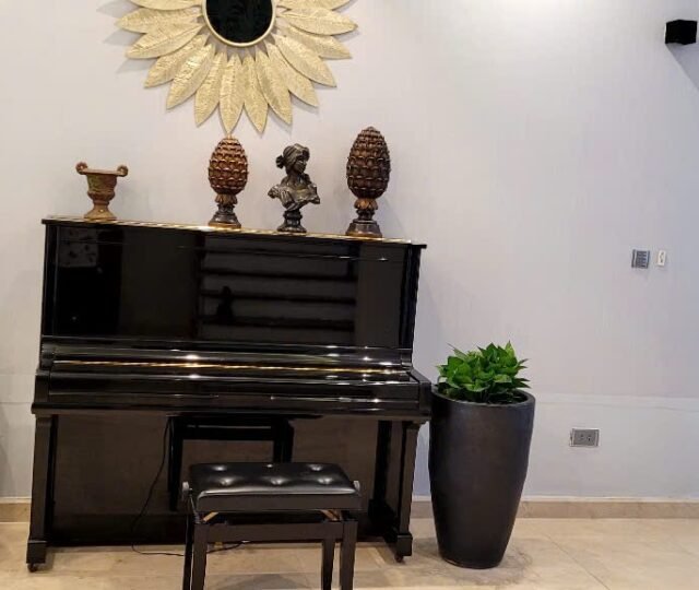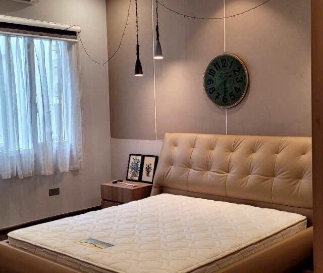 Spacious and fully furnished villa for rent in Ciputra K2-20, Hanoi. The home includes 3 bedrooms, 4 bathrooms, a family living area, and a small dressing room. The property comes as-is with all existing furniture — including a piano, clock, sofas, TV, beds, and wardrobes.