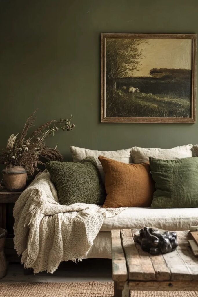 - Swap in velvet or textured cushion covers in rust or moss green.