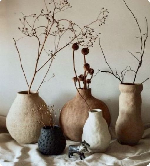 - Bring in a Bat Tràng or Wabi Sabi inspired ceramic vase with dried branches or eucalyptus.
