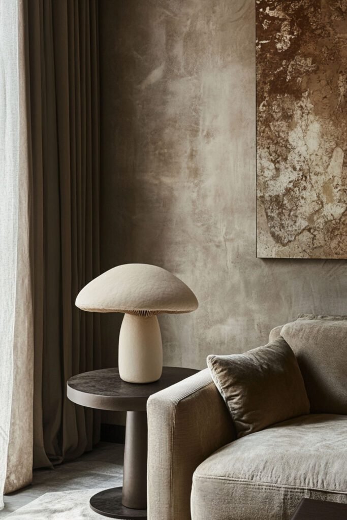 - Accent Lighting: Choose sculptural table lamps or matte brass fixtures for warmth.