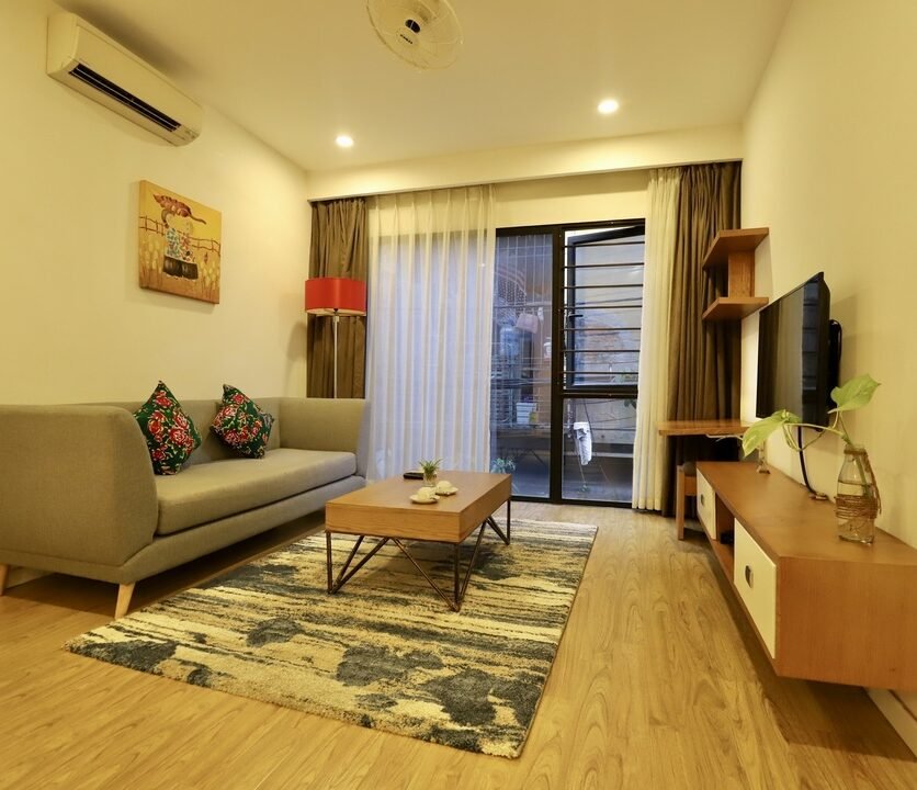 Bright and modern 1-bedroom apartment for rent on Pham Huy Thong Street, Ba Dinh