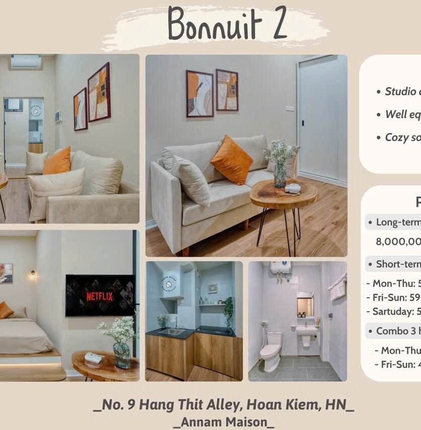 Long-term Rental Short-term Rental $310 Bonnuit Studio Apartment in Hoan Kiem Beds: 1 Baths: 1 sqm (m2): 30