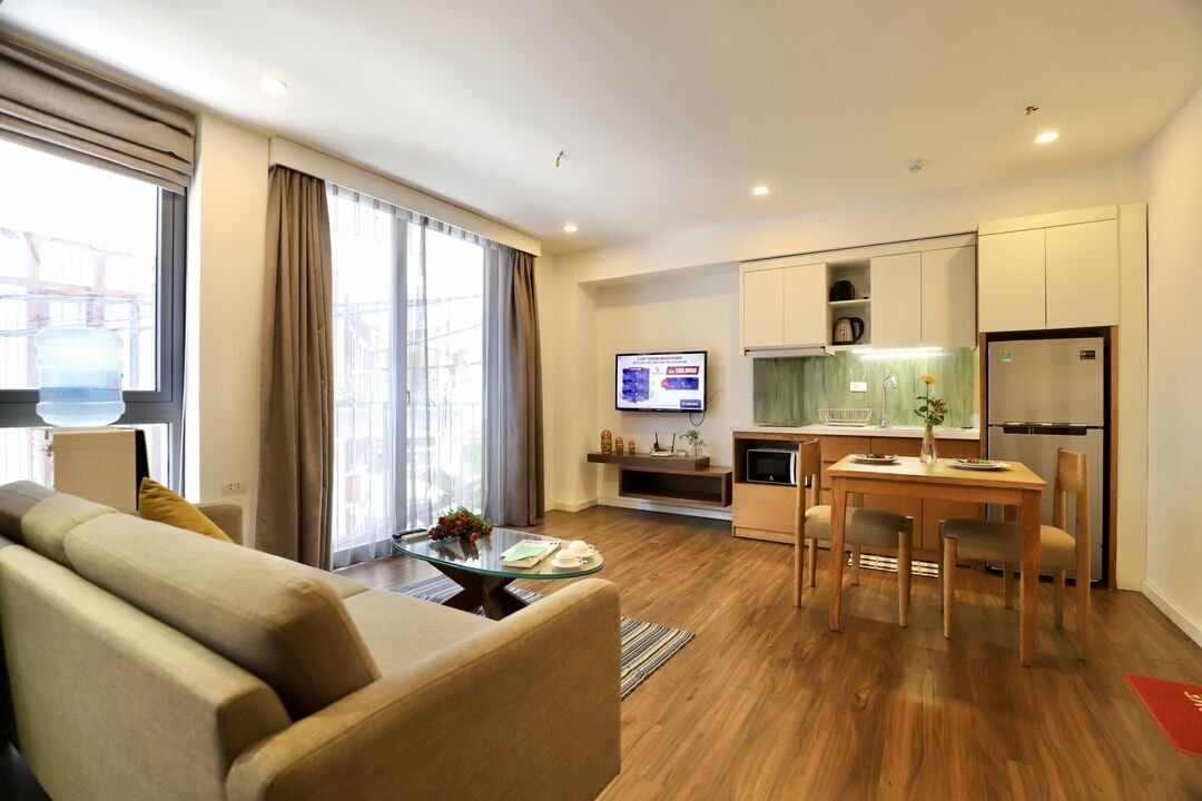 This well-appointed 1 bedroom apartment for rent in Ba Dinh is tucked away in a peaceful alley off Dao Tan Street—just a short walk from Lotte Center, the Japanese Embassy, and Kim Ma. Designed with both efficiency and comfort in mind, it’s an ideal long-term home for professionals or expats.