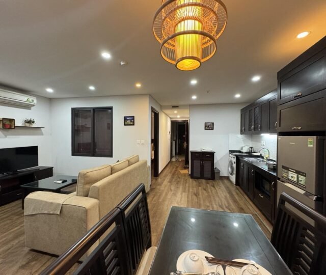 Located in the Monaco Building, Cau Giay District, Hanoi, this elegant 1-bedroom apartment offers a bright and comfortable living space of 50 m² in a prime city location. The apartment is fully furnished with a modern design, featuring a cozy living room, a functional kitchen, and a separate bedroom for privacy and comfort. Large windows bring in plenty of natural light, creating a warm and inviting atmosphere.