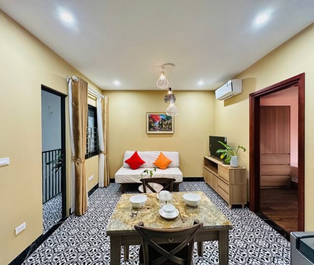 Tucked along the peaceful stretch of Yen Phu Street, this bright 1-bedroom apartment offers a calm and comfortable home just moments from West Lake. Located on the 5th floor, the apartment enjoys natural light, open views, and a relaxed atmosphere that makes it ideal for professionals, couples, or anyone looking to experience Hanoi’s lakeside lifestyle.
