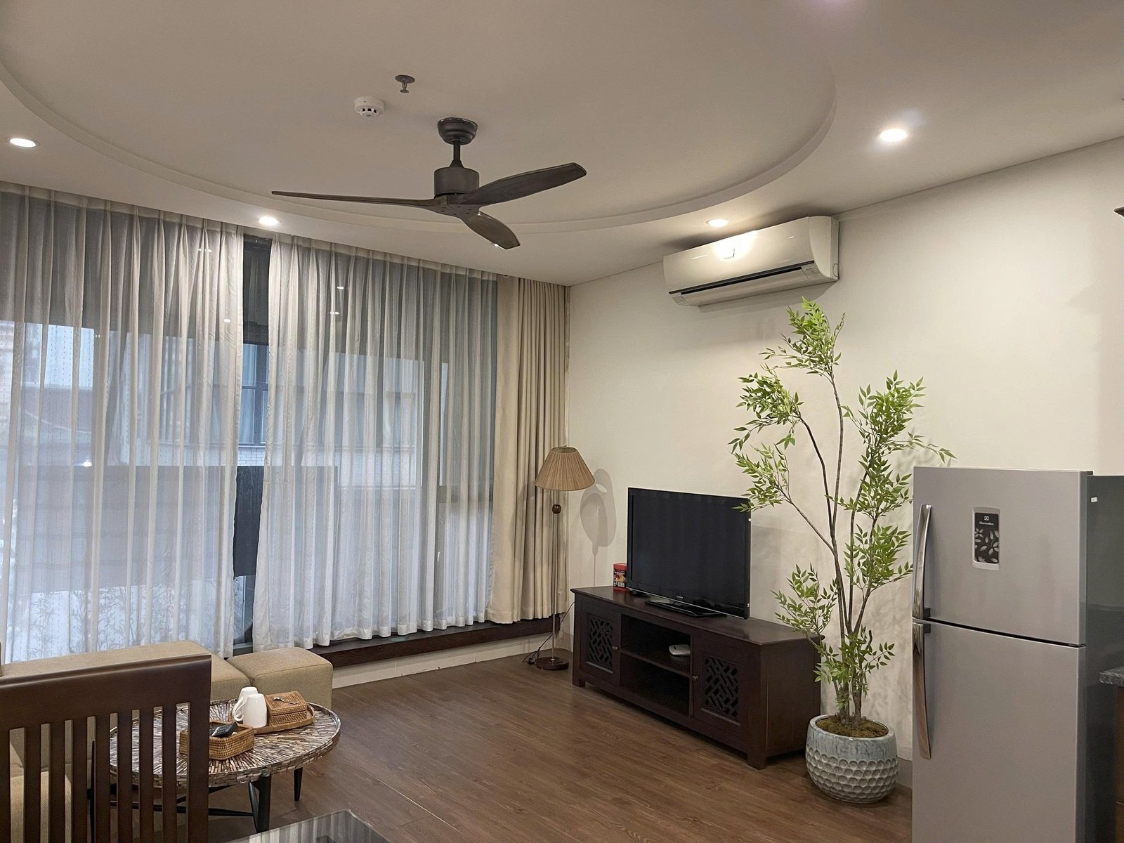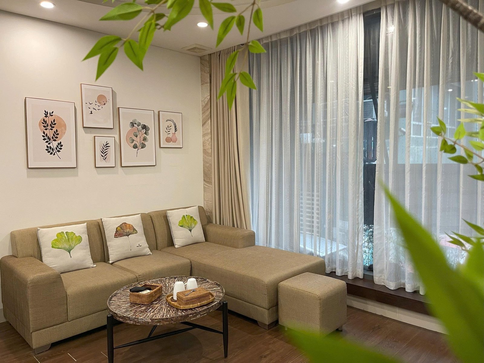 🌸 Living Area: Comfortable seating, large windows for natural light