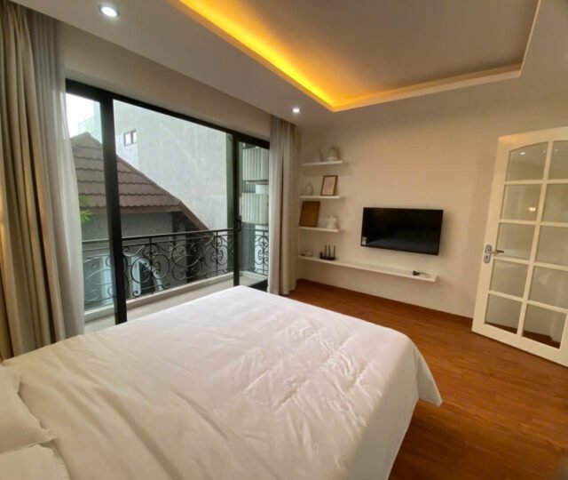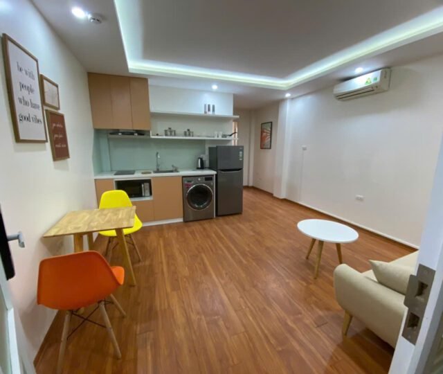Charming 1-bedroom apartment on the 2nd floor in Xom Chua, Tay Ho. This well-appointed space is fully furnished with contemporary amenities, including WiFi, bike parking, and bi-weekly housekeeping. Ideal for those looking for a peaceful and comfortable home in a tranquil neighborhood.