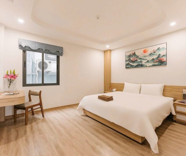 Located on the 2nd floor at 46 Linh Lang, this generous 60 sqm one-bedroom apartment offers comfort and convenience in one of Hà Nội’s most vibrant neighborhoods. The unit includes 1 bedroom, 1 bathroom, and comes with cleaning service three times a week and bed linen changed once a week. Perfect for professionals or expats seeking a well-maintained, low-maintenance living space.