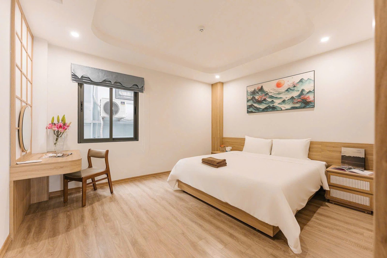 Located on the 2nd floor at 46 Linh Lang, this generous 60 sqm one-bedroom apartment offers comfort and convenience in one of Hà Nội’s most vibrant neighborhoods. The unit includes 1 bedroom, 1 bathroom, and comes with cleaning service three times a week and bed linen changed once a week. Perfect for professionals or expats seeking a well-maintained, low-maintenance living space.