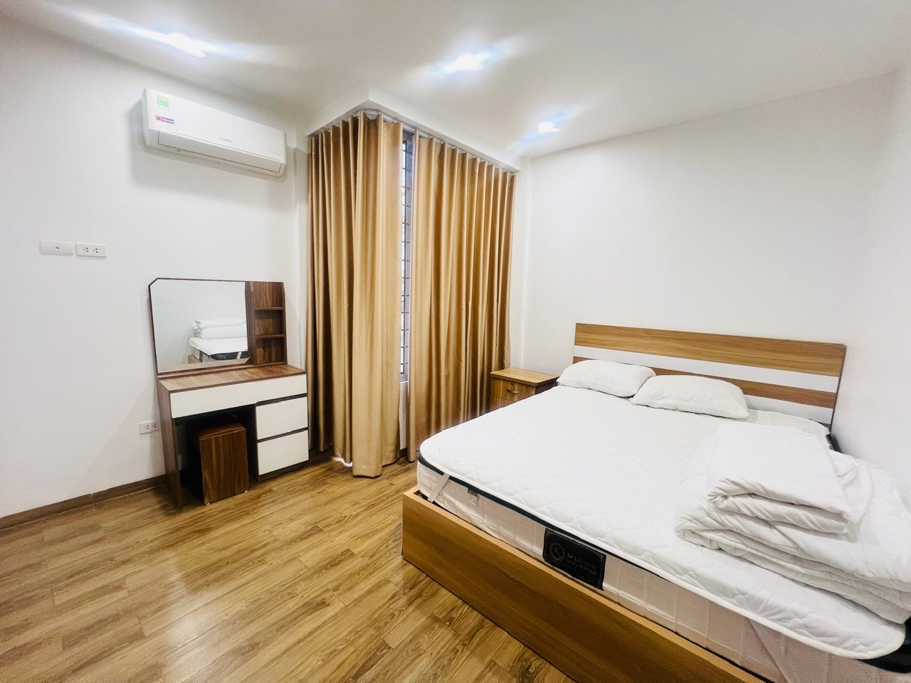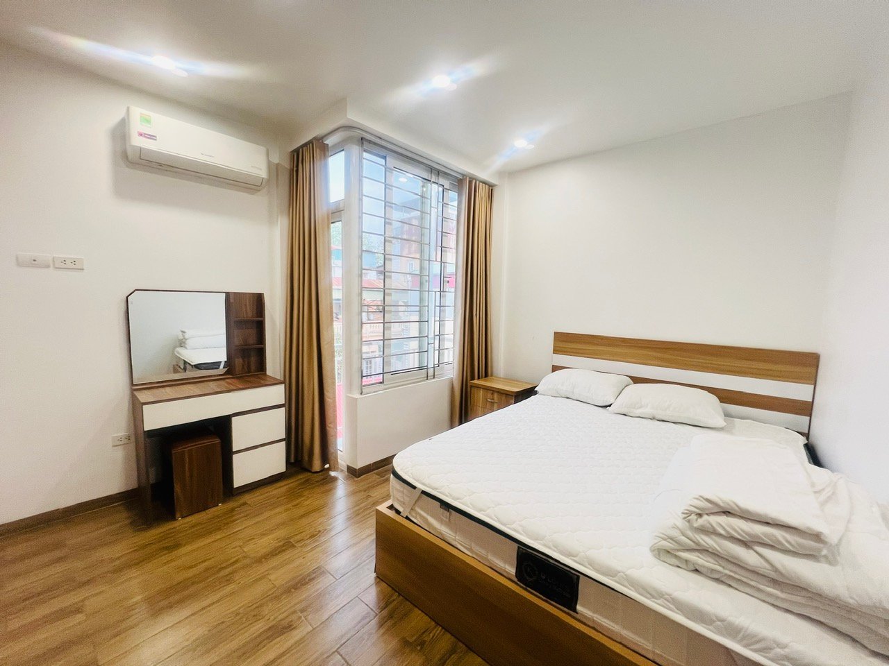 This bright and airy 2-bedroom apartment is located in a newly built house in the heart of Ba Dinh District, just 200 meters from the peaceful Trúc Bạch Lake. Designed for long-term comfort, it offers a generous 75 sqm layout with three open sides, allowing for abundant natural light throughout the day.