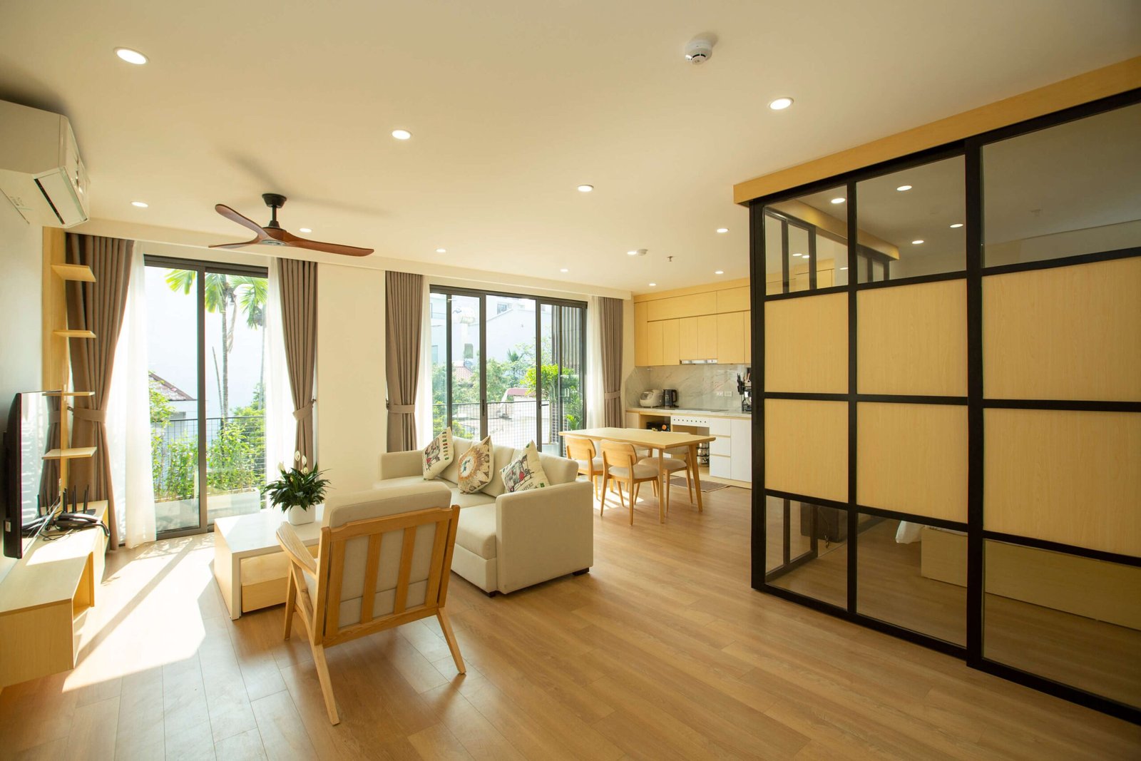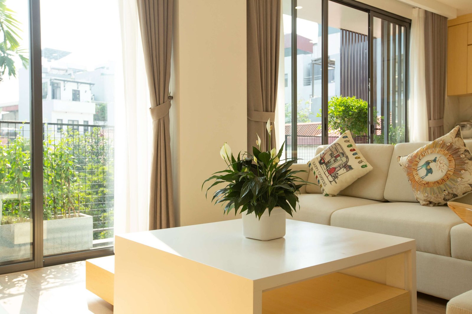 Bright living room with large windows