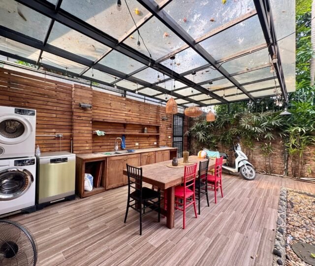 Charming 2-bedroom, 2-bathroom lake view house for rent in West Lake, Hanoi. Single-floor design with spacious living room, modern kitchen, 50m² garden, car access, and full furniture. Perfect for couples seeking quiet and convenience near gyms, supermarkets, and daily services.