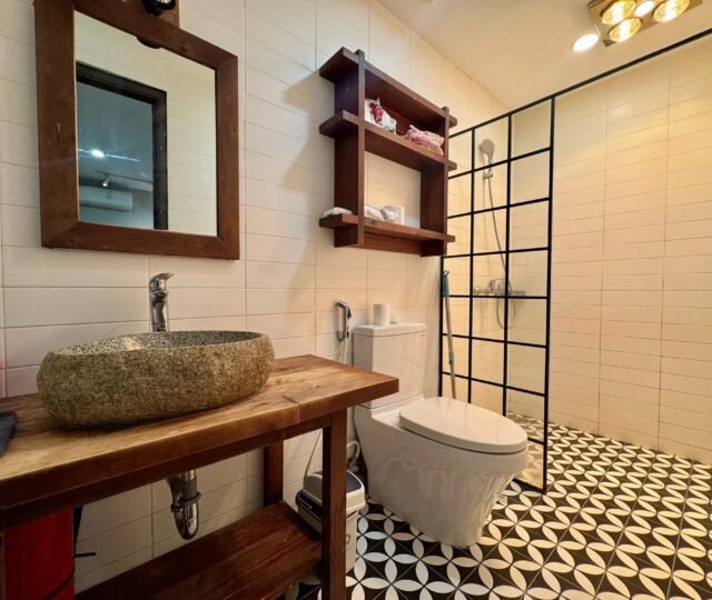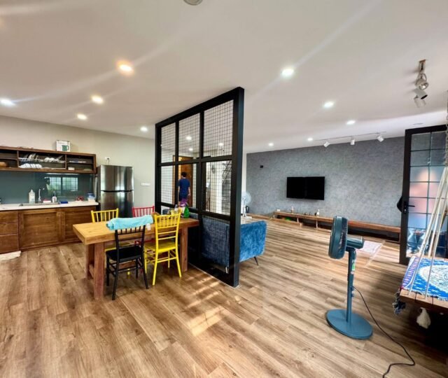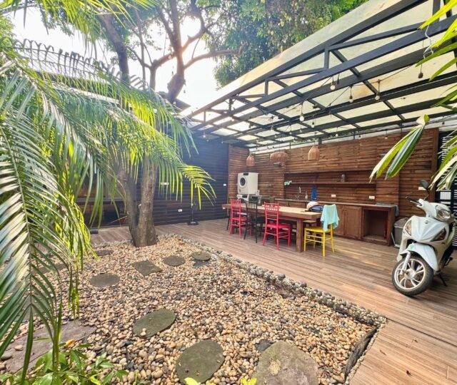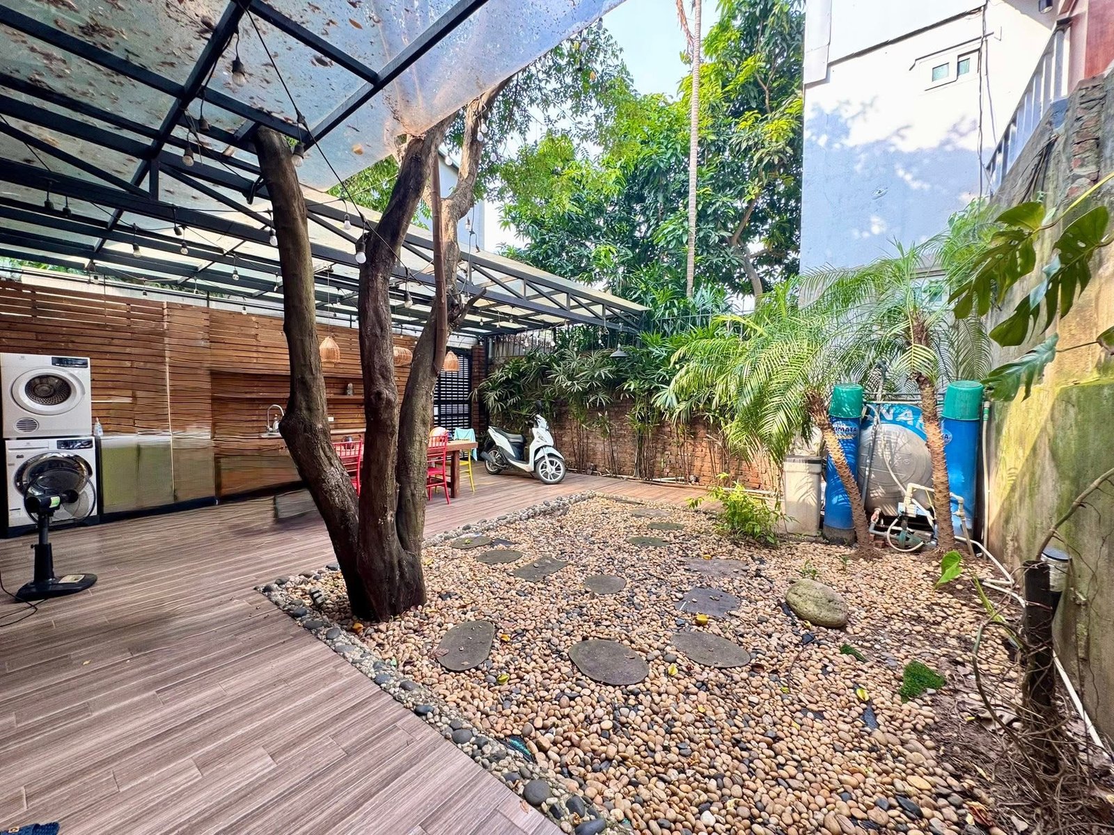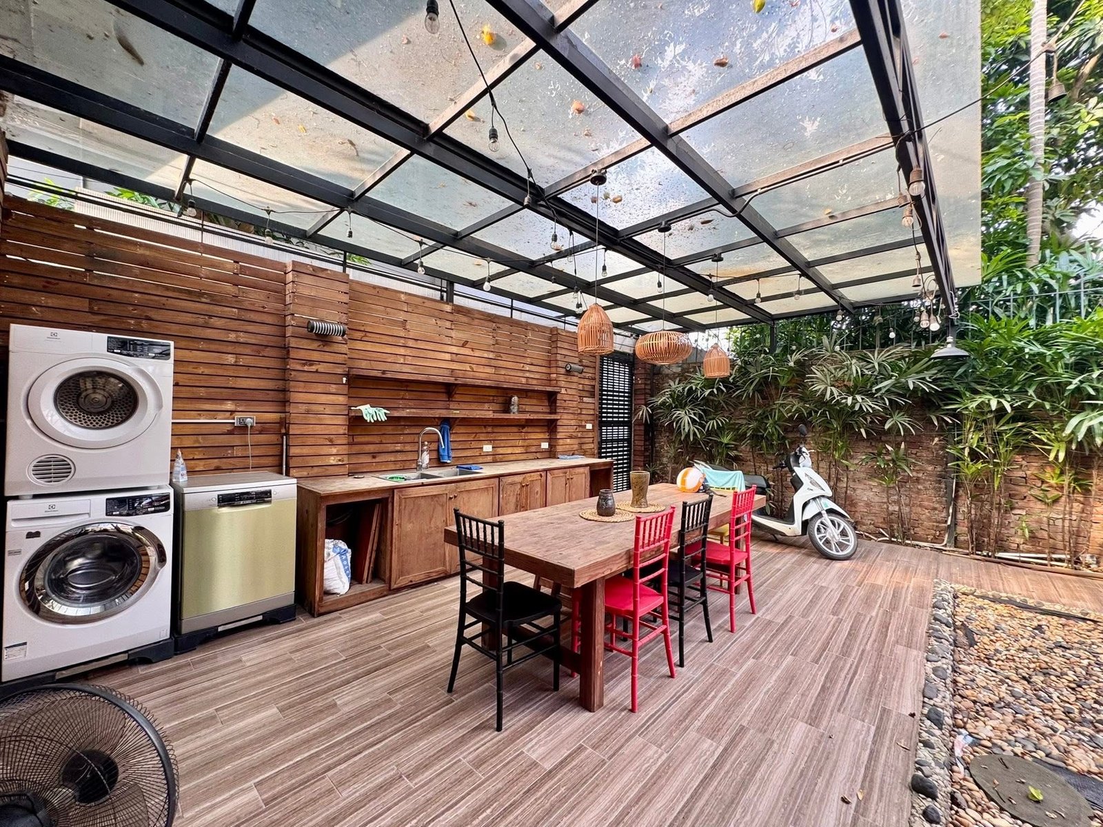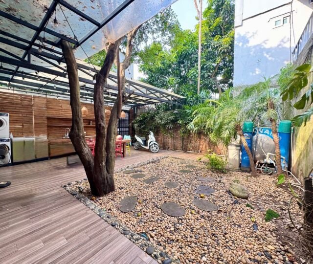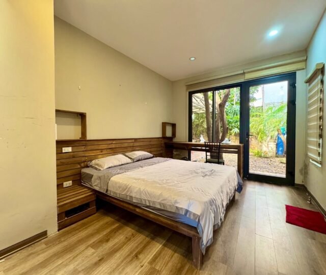Charming 2-bedroom, 2-bathroom lake view house for rent in West Lake, Hanoi. Single-floor design with spacious living room, modern kitchen, 50m² garden, car access, and full furniture. Perfect for couples seeking quiet and convenience near gyms, supermarkets, and daily services.