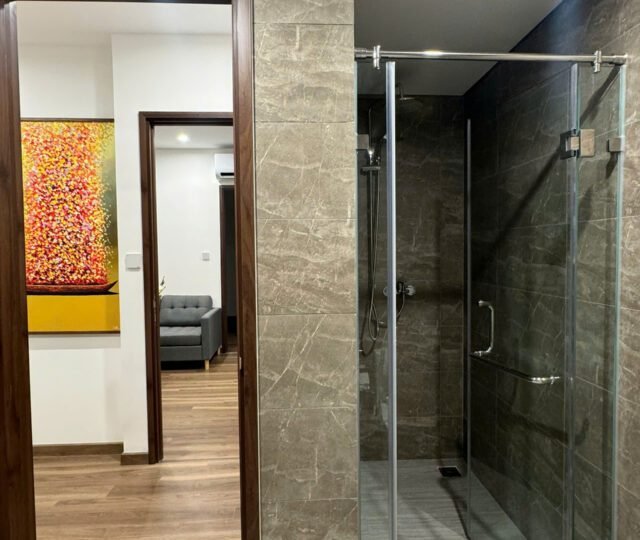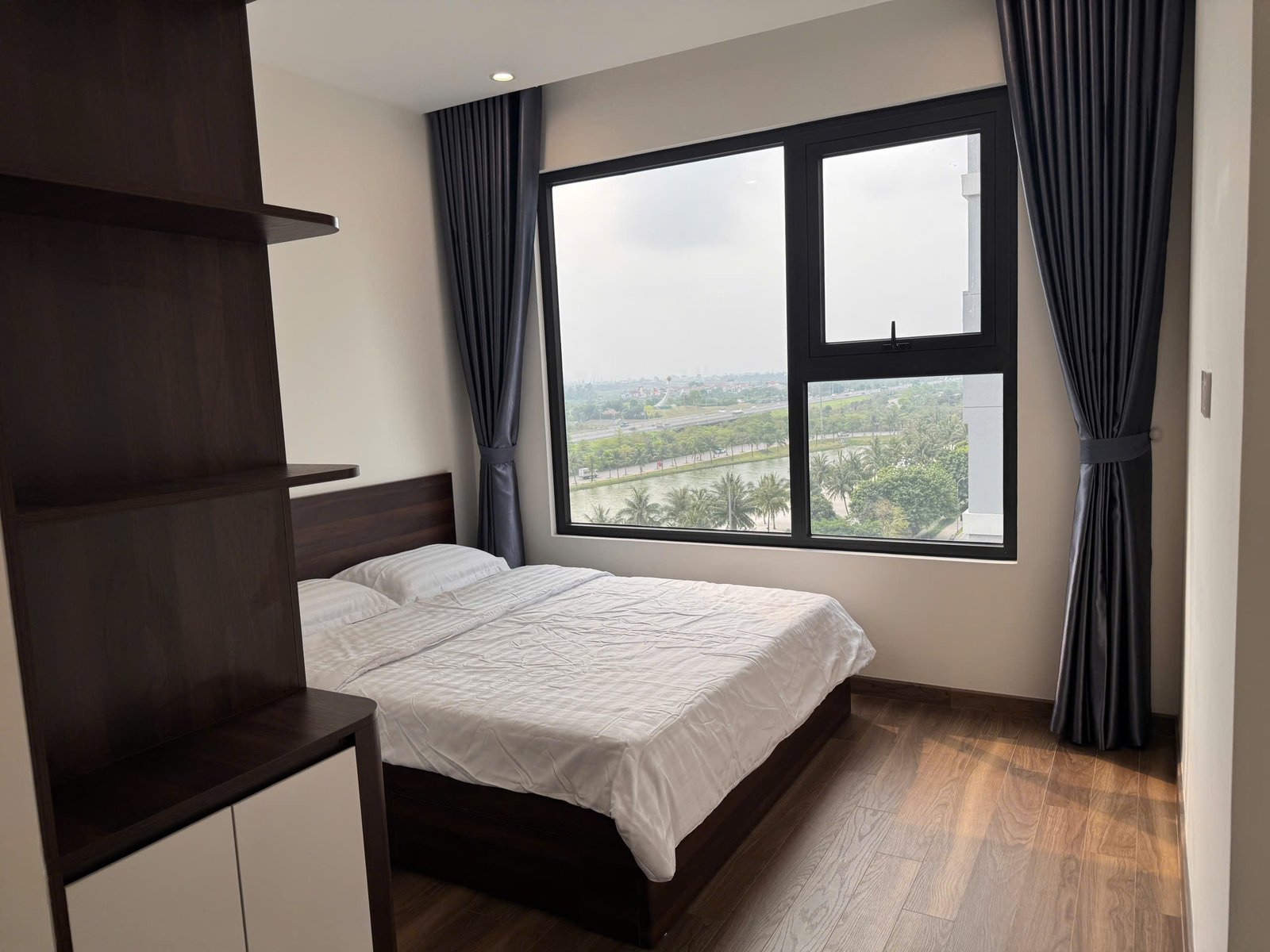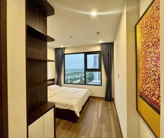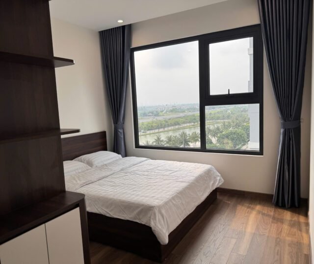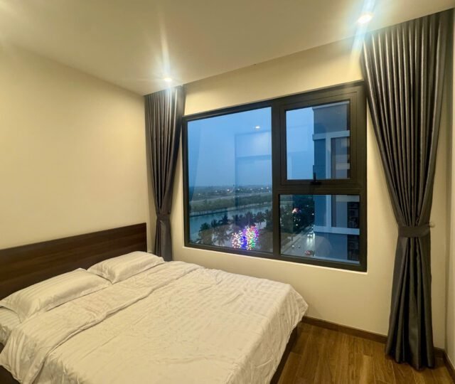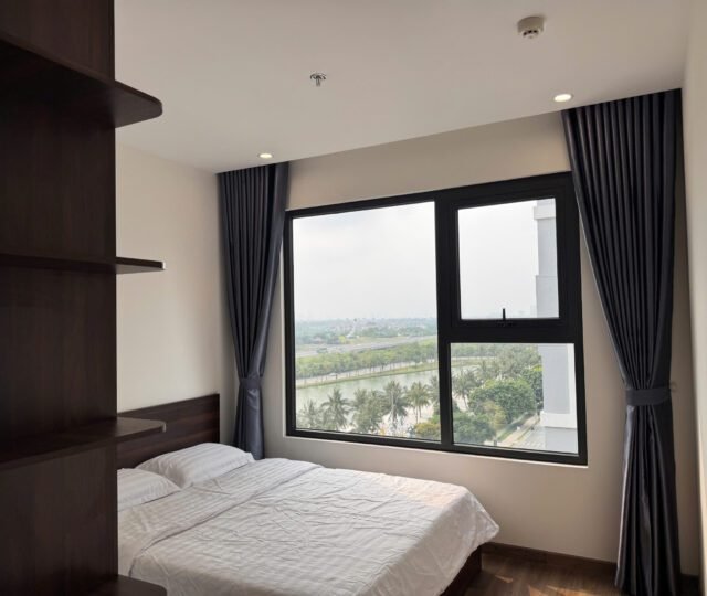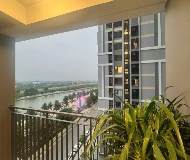 Rent this 2-bedroom corner apartment in Zurich 2, Vinhomes Ocean Park, Gia Lâm, Hanoi. 63.2 sqm, 2 bathrooms, lake city setting, beautiful river and courtyard views, from $600/month.