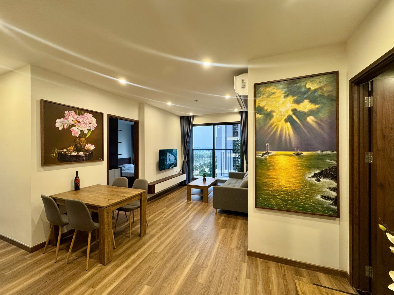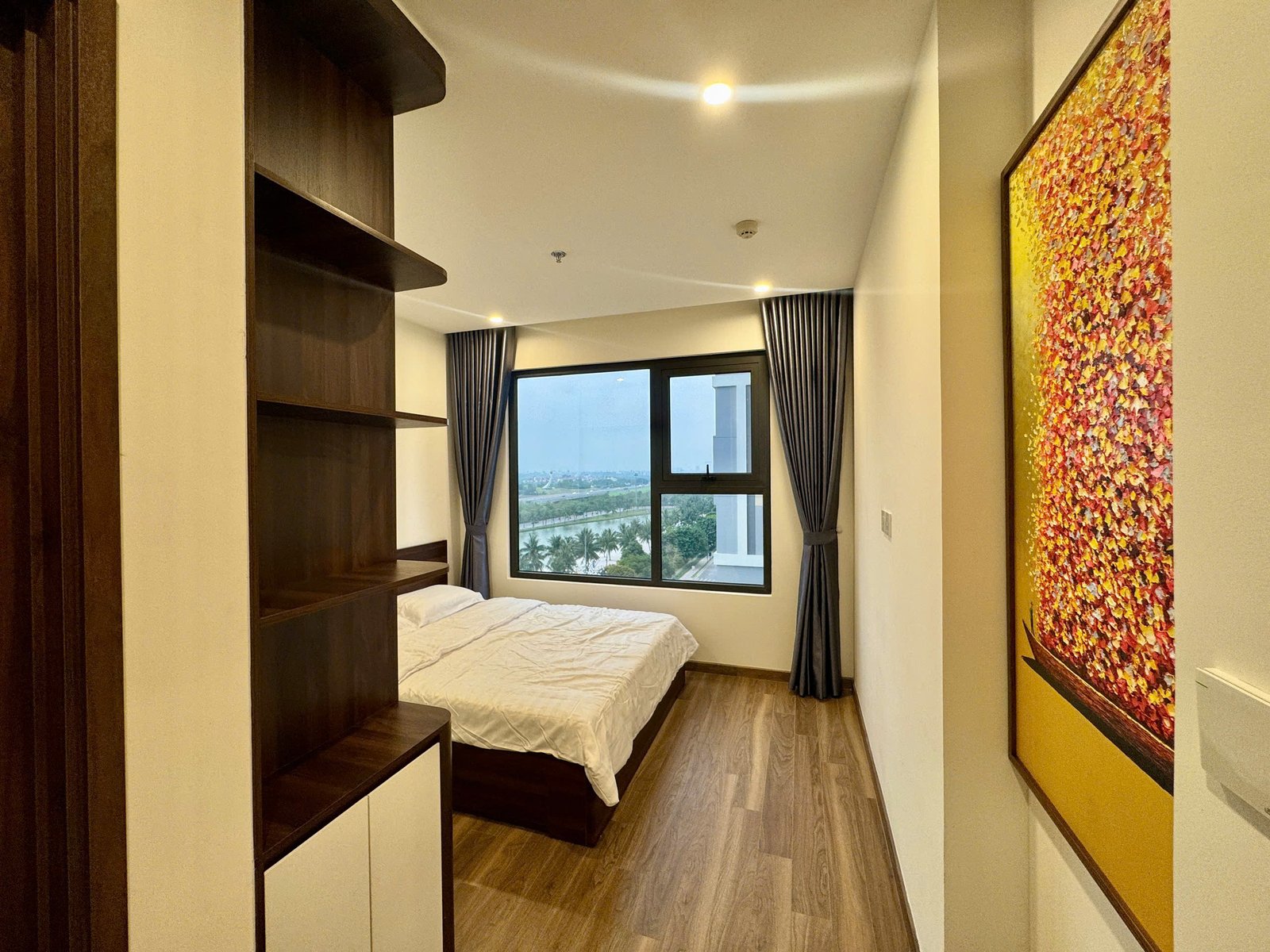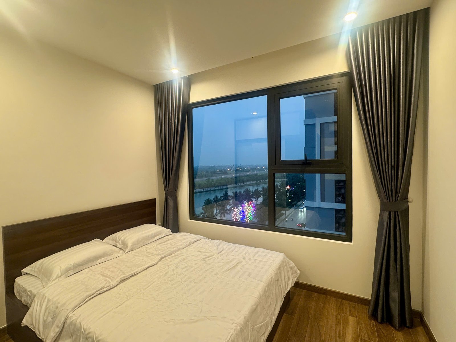 Rent this 2-bedroom corner apartment in Zurich 2, Vinhomes Ocean Park, Gia Lâm, Hanoi. 63.2 sqm, 2 bathrooms, lake city setting, beautiful river and courtyard views, from $600/month.
