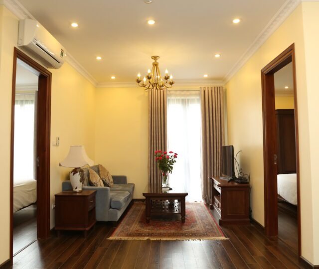 Comfortable 2-bedroom serviced apartment for rent at 399 Au Co, Tay Ho. Fully furnished with housekeeping, spacious layout, and great amenities. Perfect for comfortable living in Hanoi. Contact us today!