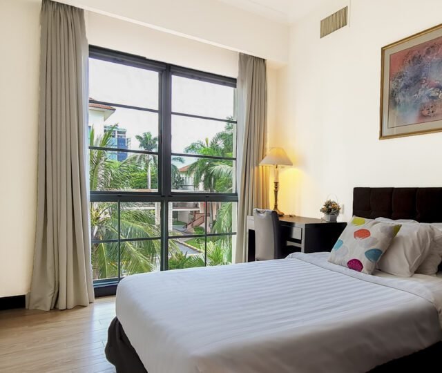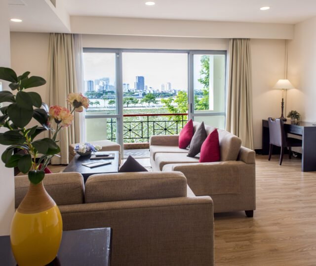 Escape to a peaceful 3-bedroom villa at Diamond Westlake Suites, offering 128 sqm of private living with garden or lake views. Enjoy luxury facilities including tennis courts, a gym, sauna, pool, BBQ area, and shuttle service. Rates from $3,036/month to $3,226, fully inclusive of taxes and daily services like housekeeping and breakfast.