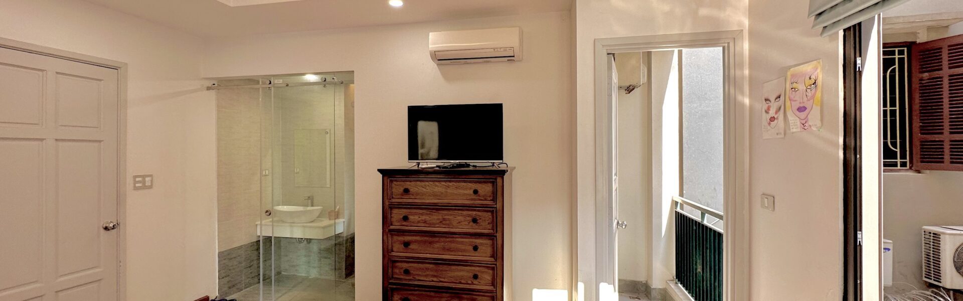 Spacious and affordable 80m² 2-bedroom apartment for rent in Xom Chua, Tay Ho. Fully furnished, bright, and conveniently located near West Lake. Rent: 12,000,000 VND/month. Perfect for young families or professionals.