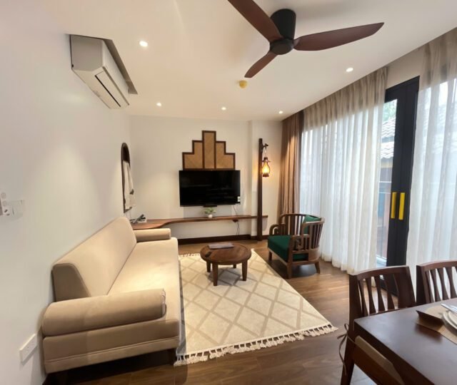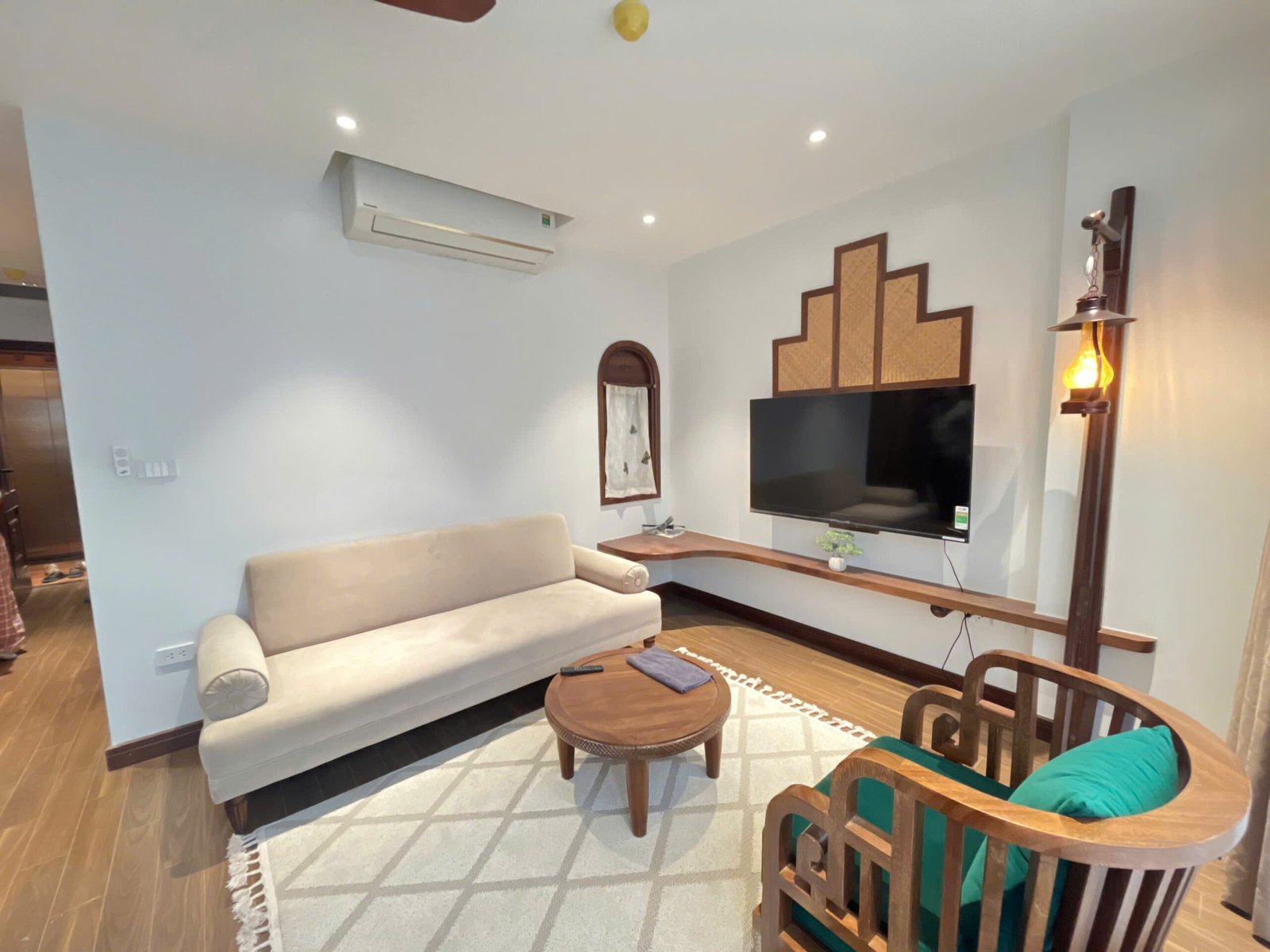 Discover this brand new 2-bedroom Indochine-style apartment on the 3rd floor of a modern building on Tu Hoa, Tay Ho. Elegant design. —perfect for stylish Hanoi living.