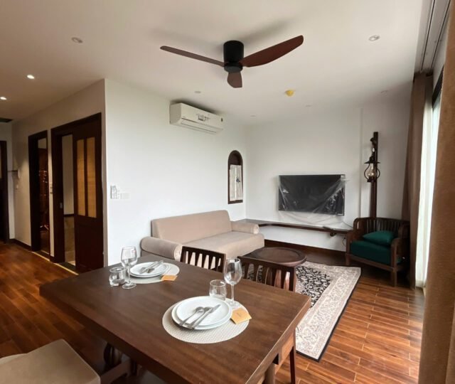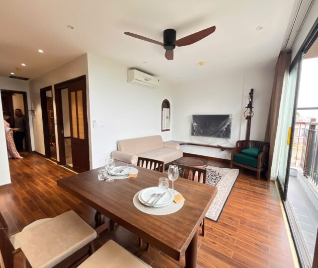 Discover this brand new 2-bedroom Indochine-style apartment on the 6th floor of a modern building on Tu Hoa, Tay Ho. Elegant design, natural light, and West Lake views—perfect for stylish Hanoi living.