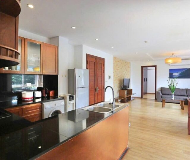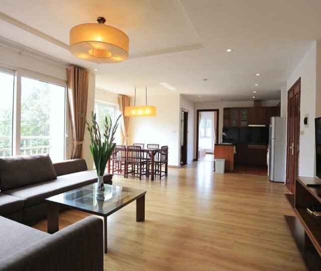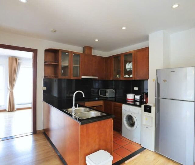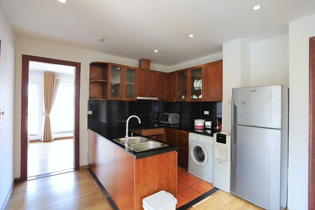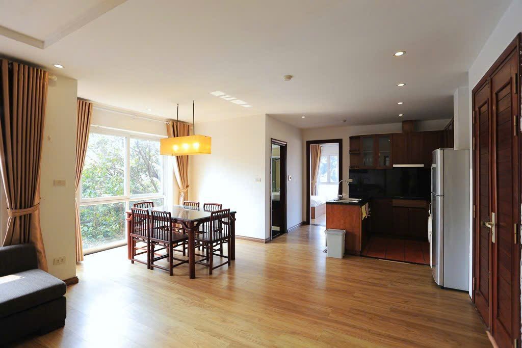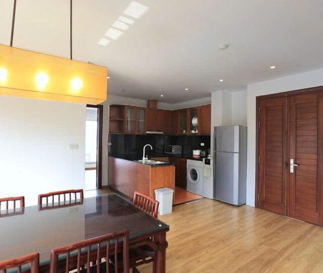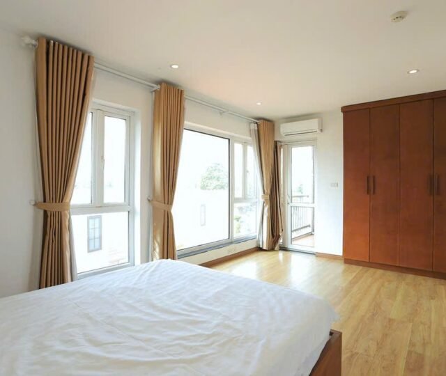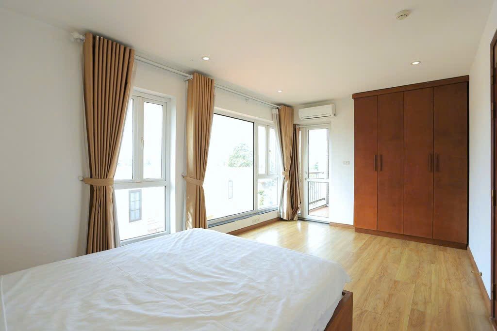 This bright and spacious two-bedroom apartment is located on the 4th floor of a well-maintained building in a quiet, tree-lined alley off Dang Thai Mai Street in Tay Ho. With a private balcony and a fitted oven, this home is perfect for tenants seeking comfort, functionality, and a calm, green setting close to West Lake.