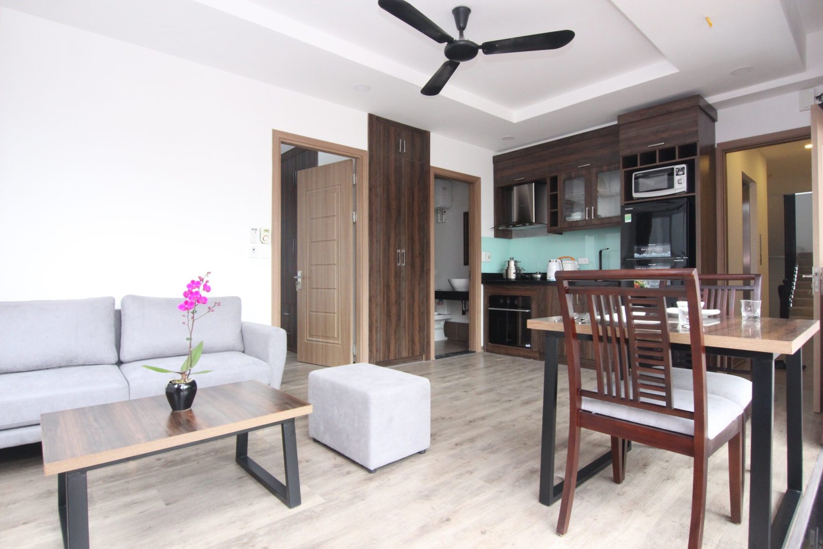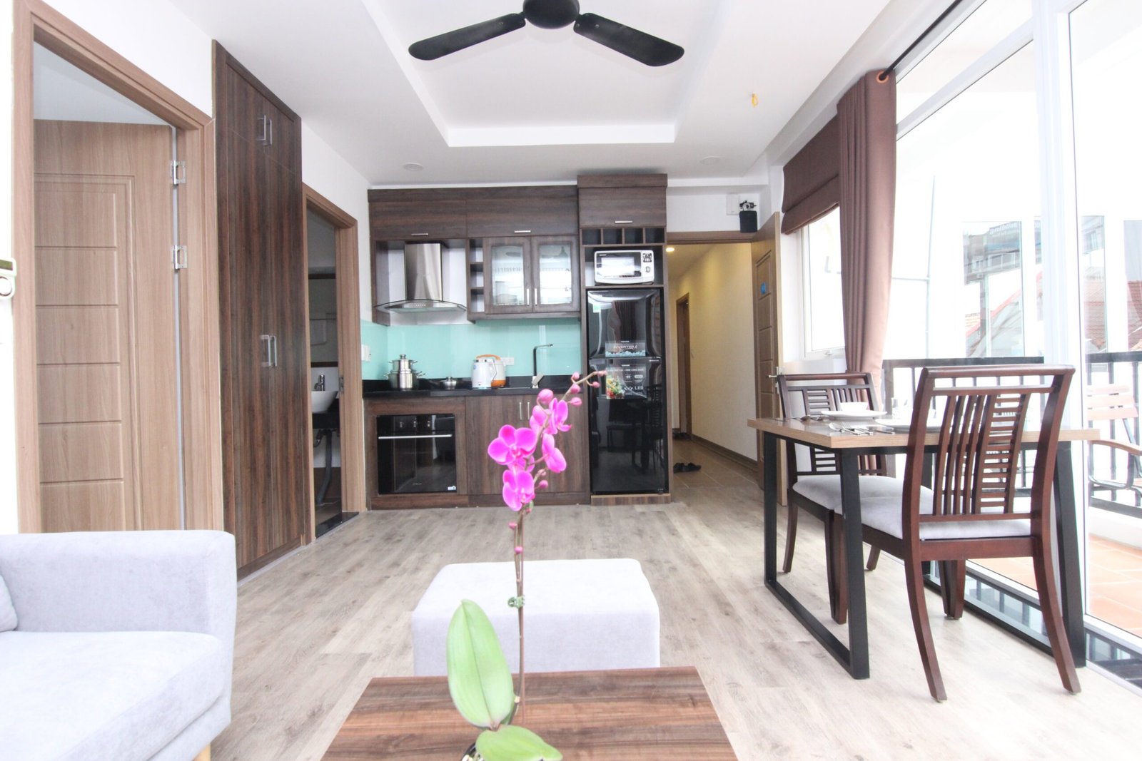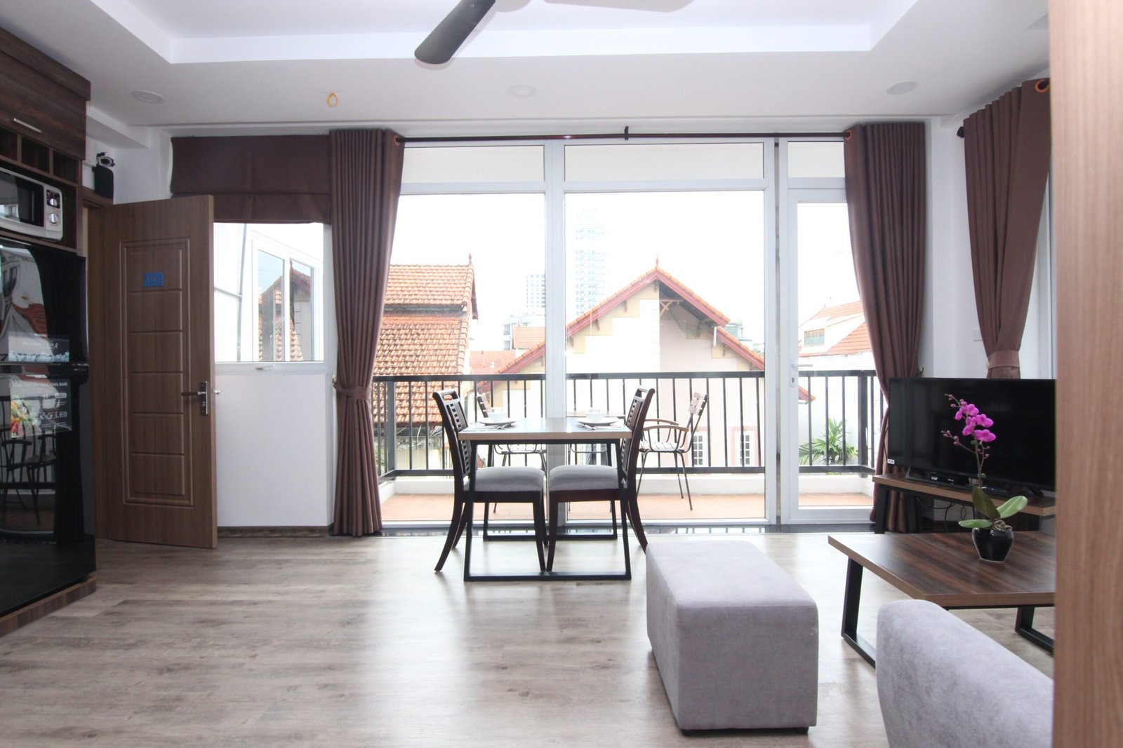 Bright and airy 1-bedroom serviced apartment on To Ngoc Van, Tay Ho. Filled with natural light, fully furnished, and includes housekeeping. Perfectly located near West Lake, cafes, and shops—ideal for comfortable, convenient living