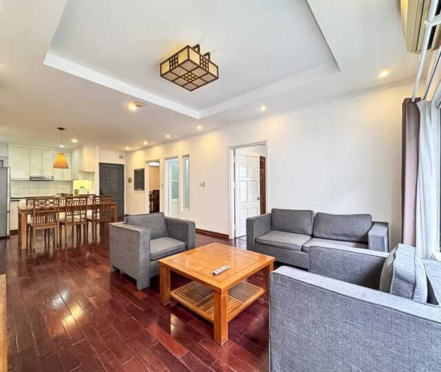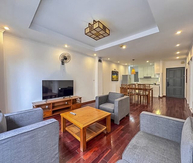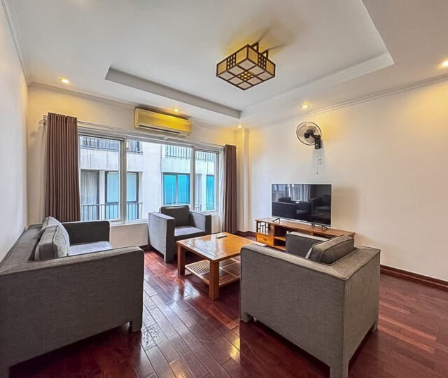 The apartment features a spacious living area, fully equipped kitchen, and two cozy bedrooms, ideal for couples or small families. With ample natural light, comfortable furnishings, and a calm residential setting, it’s a lovely place to call home in Hanoi.