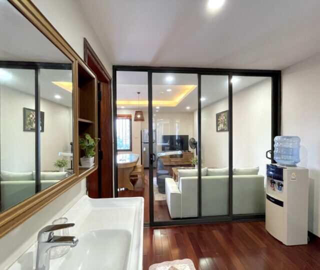 The 1-bedroom apartment on Kim Ma’s 9th floor boasts a charming layout that seamlessly blends comfort and elegance. Its well-planned spaces offer a cozy ambiance, perfect for urban living. The bedroom provides a peaceful retreat, while the open-concept living area and kitchen create a versatile and social hub. This apartment on Kim Ma’s 9th floor is a delightful choice for those seeking a charming living space with a touch of sophistication and stunning views from the high floor.