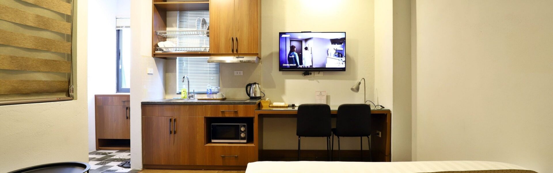 The cost-effective 1-bedroom studio on Au Co, available on both the 3rd and 6th floors, provides a practical and budget-friendly living option. This studio apartment is designed with essential amenities to cater to the needs of individuals or couples seeking an economical living solution.