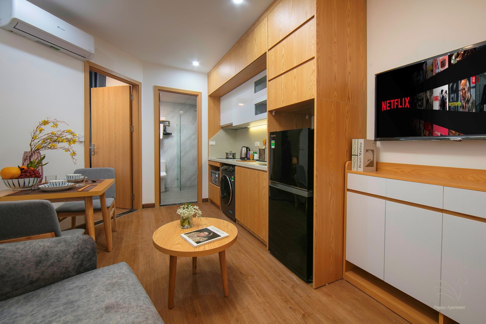 This thoughtfully designed 1-bedroom apartment offers a calm and private living space, ideal for those who value peace and quiet. With soft lighting and a warm interior, it’s perfect for relaxing, working from home, or unwinding after a busy day in the city.