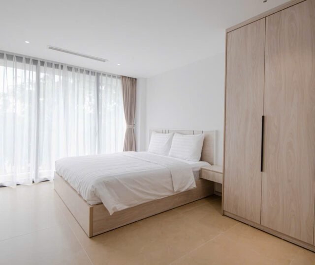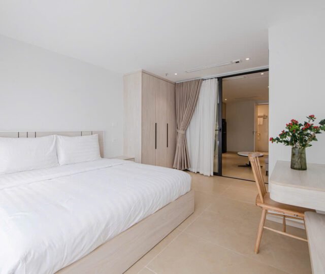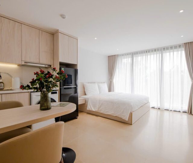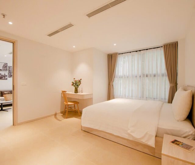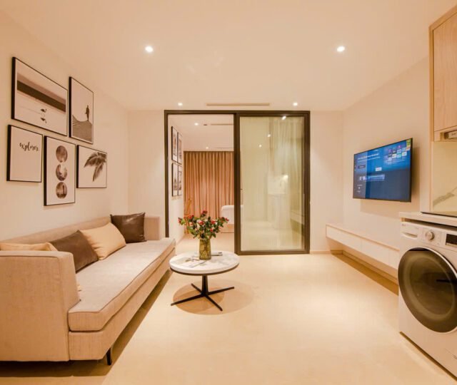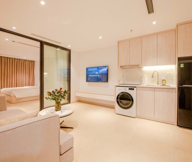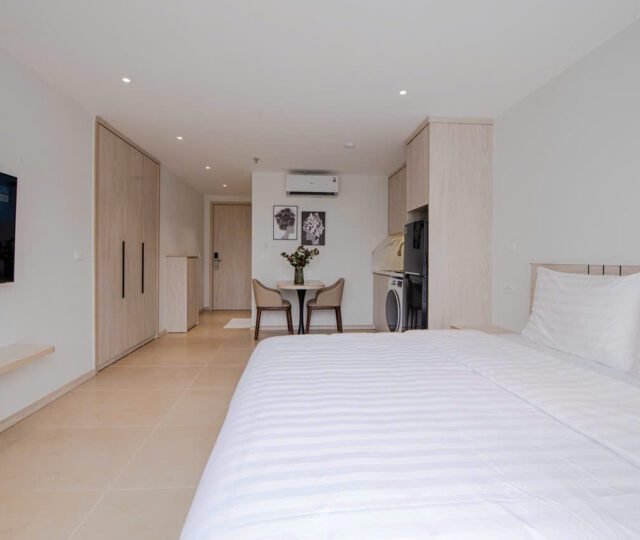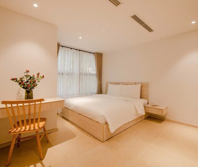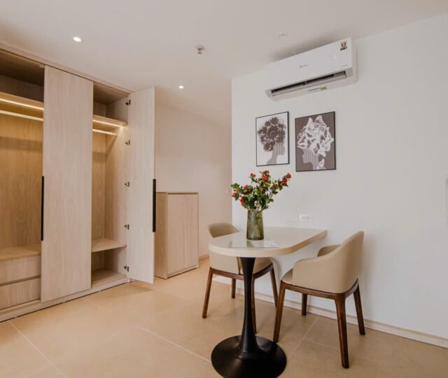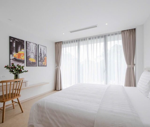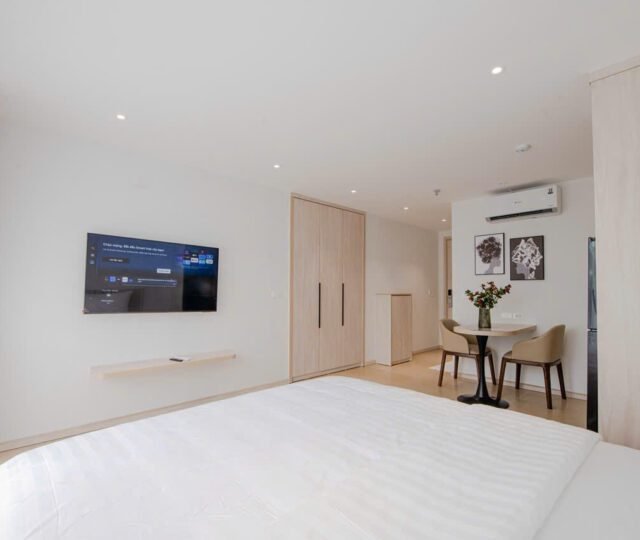 Located on the 2nd floor of a peaceful building at 157 Nhat Chiet Street, Nhat Tan, Tay Ho, these 1-bedroom apartments are ideal for singles or couples looking for a quiet, well-maintained home. Both units include weekly cleaning and cable TV.