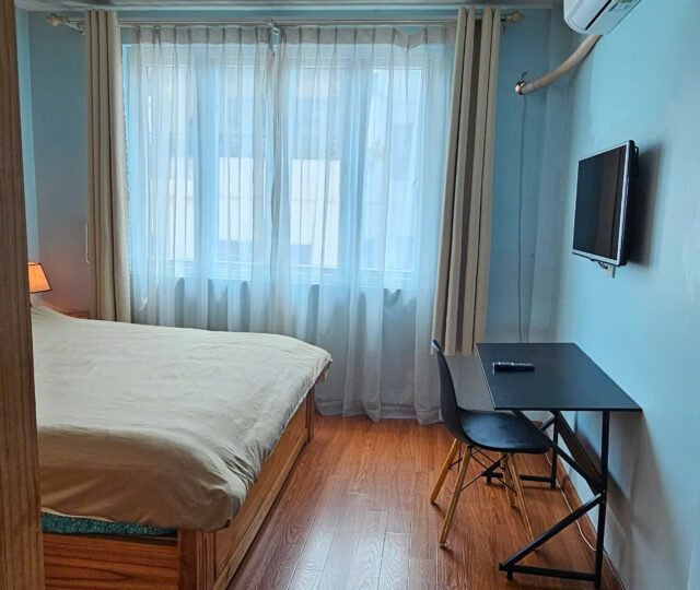 This bright and cozy 1-bedroom apartment on the 7th floor offers stunning views of West Lake from Vu Mien Street, Tay Ho. With a clean, minimalist layout and 45m² of well-designed space, it’s perfect for singles or couples. The unit includes a 1.6m x 2m bed, air conditioner, washer, dryer, and weekly cleaning service. Utilities like water are included. Enjoy peaceful living just steps from the lake in a secure and friendly neighborhood.