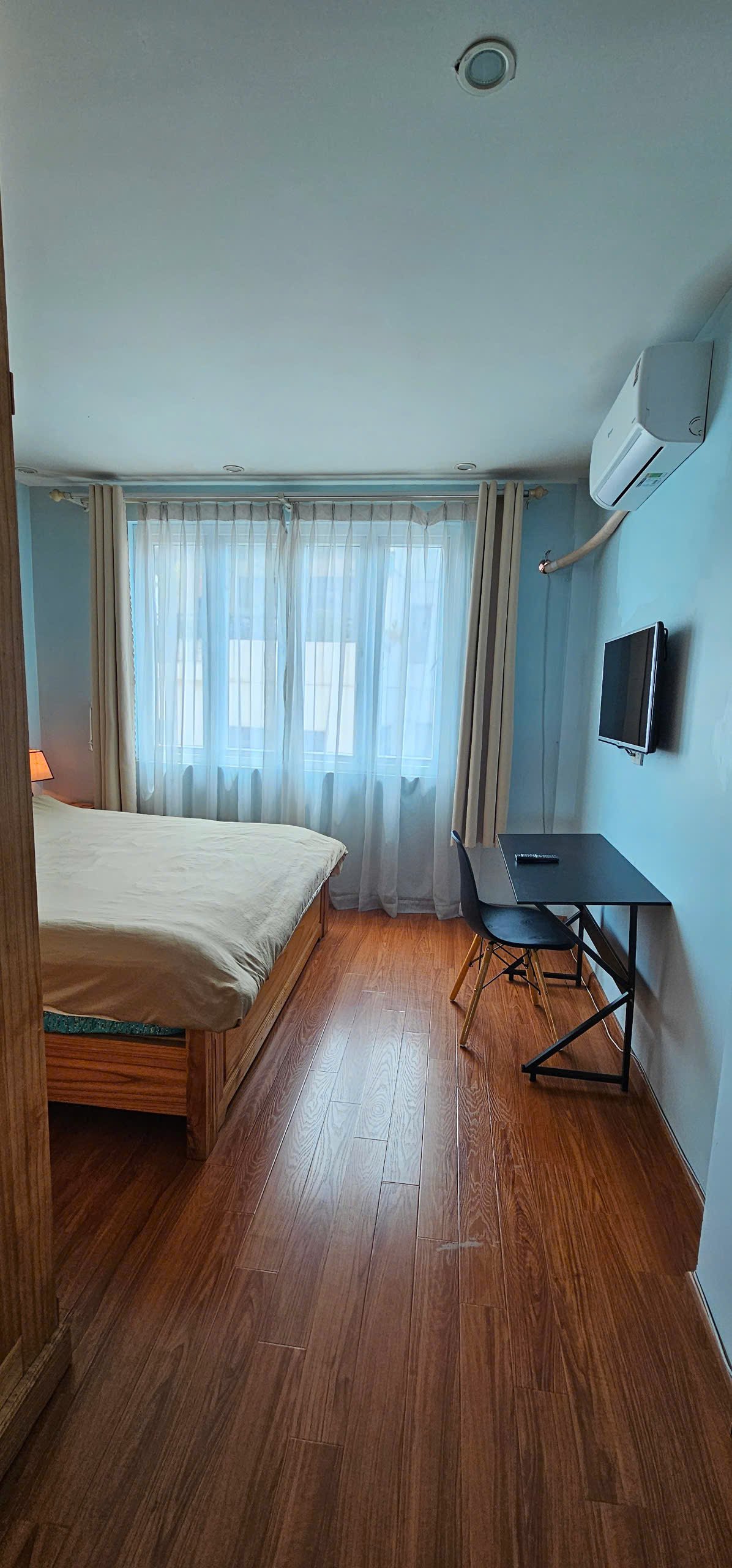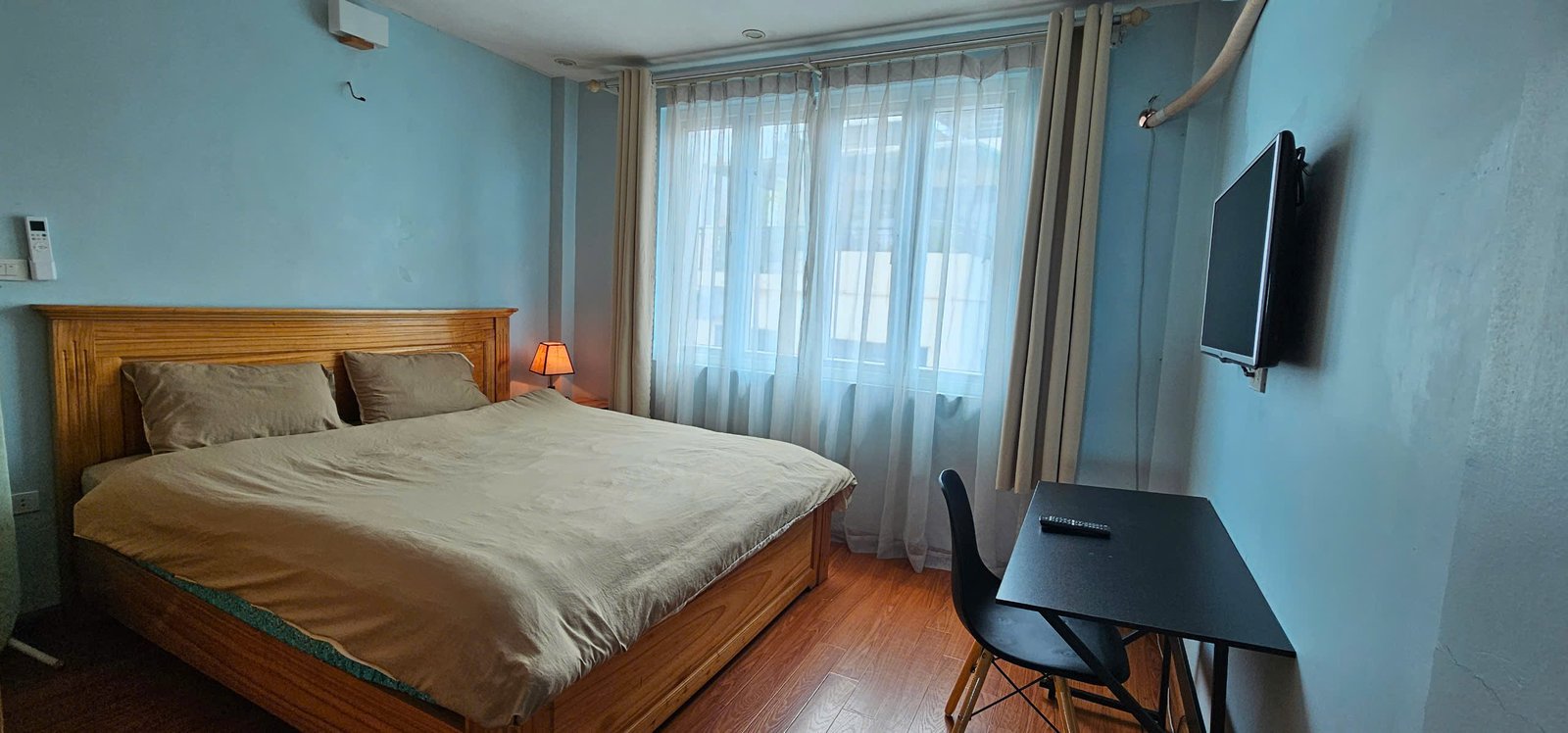This bright and cozy 1-bedroom apartment on the 7th floor offers stunning views of West Lake from Vu Mien Street, Tay Ho. With a clean, minimalist layout and 45m² of well-designed space, it’s perfect for singles or couples. The unit includes a 1.6m x 2m bed, air conditioner, washer, dryer, and weekly cleaning service. Utilities like water are included. Enjoy peaceful living just steps from the lake in a secure and friendly neighborhood.