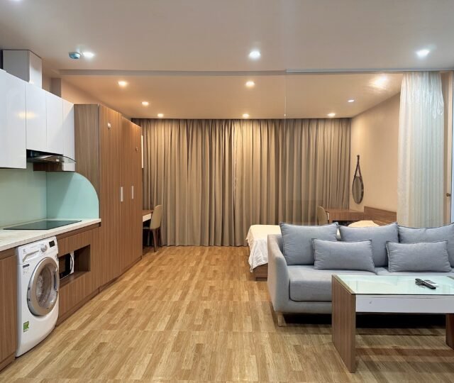 Comfortable 45m² studio apartment on the 2nd floor of 31 Xuan Dieu, Tay Ho, Hanoi. Fully furnished, bright, and well-maintained. Available for both long-term and short-term rental. Rent: 8,500,000 VND/month.