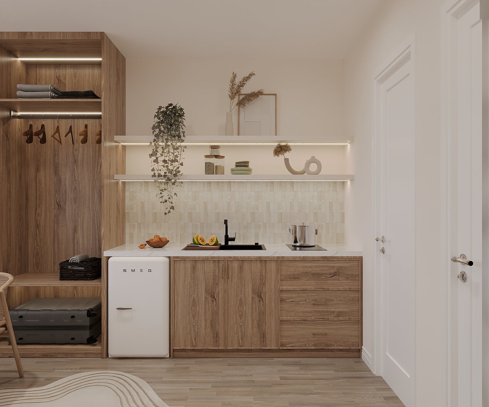 Experience hassle-free laundry days with the dedicated washing and drying area within the apartment, ensuring your clothes are always fresh and clean. Plus, with the added convenience of an electric card and smart door lock, you can enjoy peace of mind and seamless access to your studio.