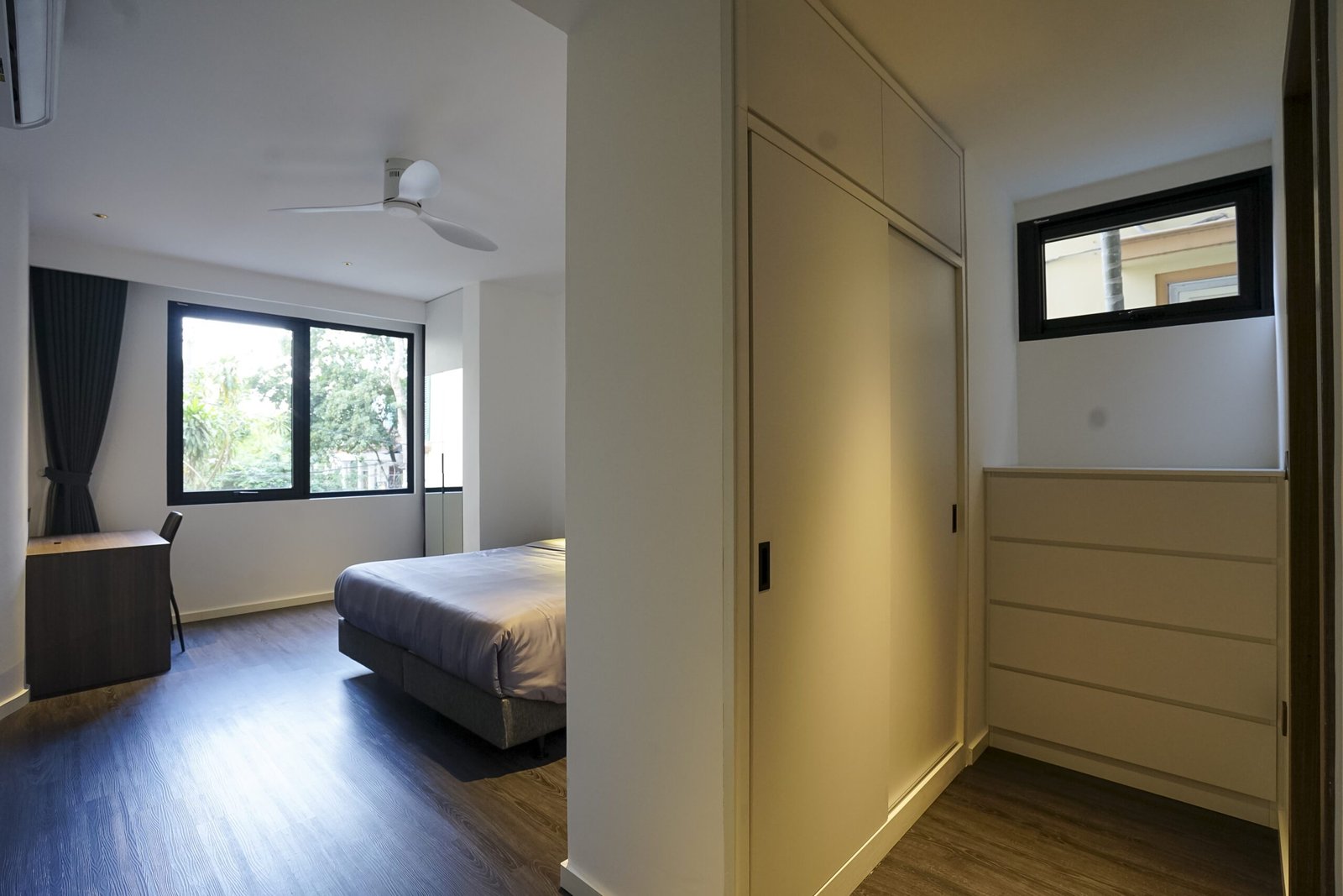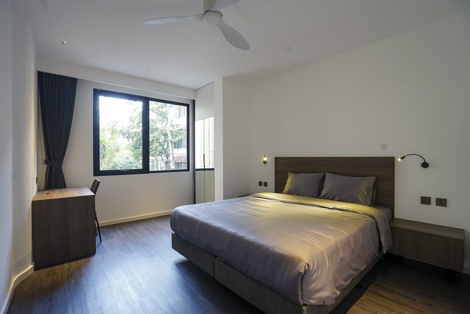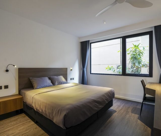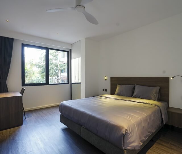 Elegant 3-bedroom apartment on the 2nd floor with serene West Lake views, located on Quang Khanh Street, Tay Ho. Fully furnished with 3 bathrooms, 2 balconies, and full services: high-speed internet, tap water, cable TV, housekeeping 3 times/week, 24/7 security, and basement parking.