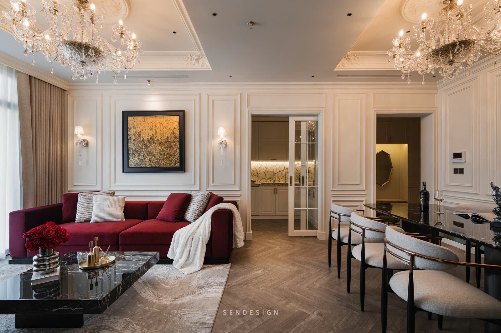 Experience luxury living in this exquisite 3-bedroom apartment (112m²) at Kosmo Tay Ho, Hanoi. Positioned on a cool Southeast-facing middle floor, this stunning home boasts two balconies and premium finishes. Enjoy top-tier amenities, including a Swiss ABB electrical system, Lumi smart home controls, and Mitsubishi multi-ceiling air conditioning. The modern kitchen features Bosch and Hafele appliances, while imported Mem furniture, An Cuong wood, and Asfour crystal chandeliers add elegance. The building offers a swimming pool, gym, cinema, and 24/7 security. Designed by Sen Design, this refined residence is a rare gem in Tay Ho.