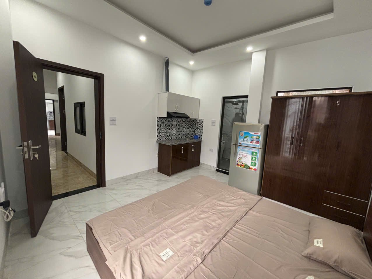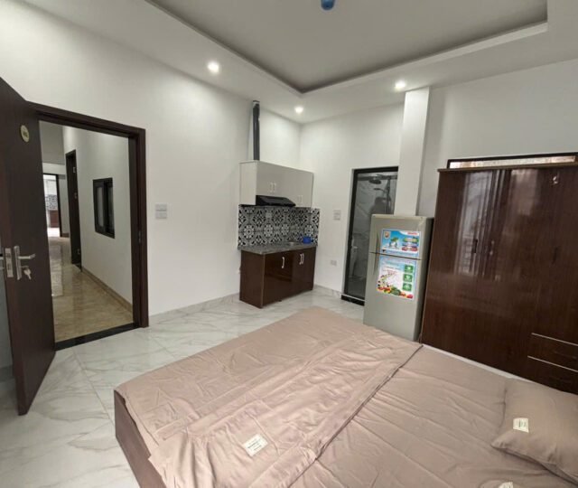 A clean, modern studio apartment in Ngoc Ha, Ba Dinh. Features an elevator, balcony, AC, and kitchenette. An affordable and convenient home in a prime location. Inquire for details!