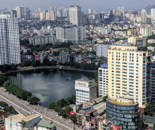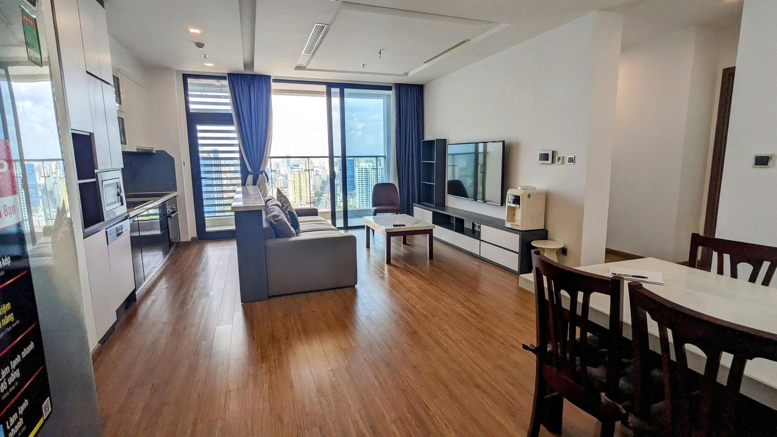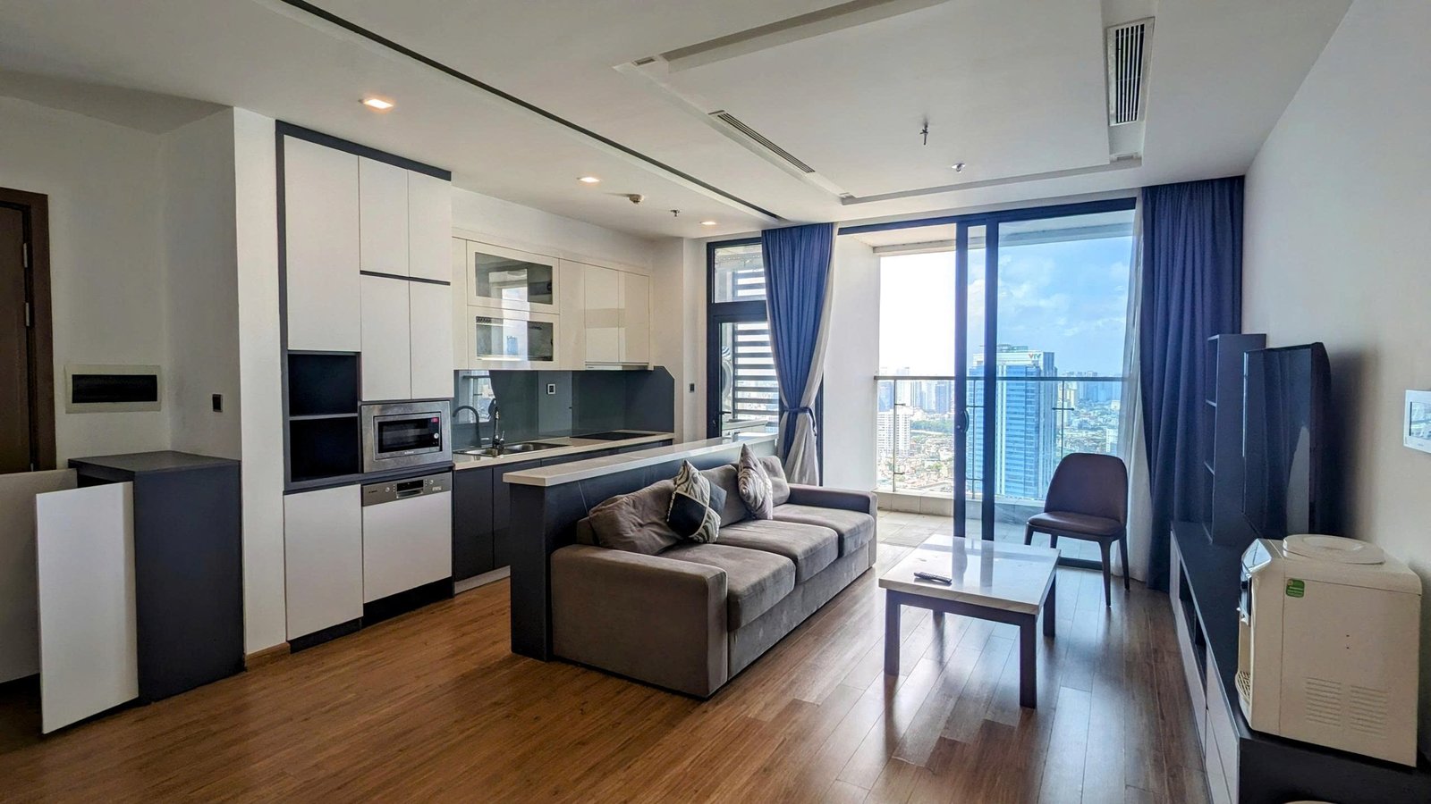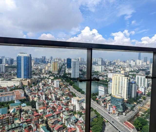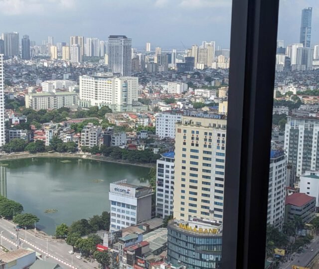 High-floor 2 bedroom apartment for rent in Vinhomes Metropolis, Lieu Giai. This bright, modern unit features stunning city views, a fully equipped kitchen, two bathrooms, central A/C, and access to top-tier amenities including a swimming pool, fitness center, shopping mall, and 24/7 security—perfect for upscale city living.
