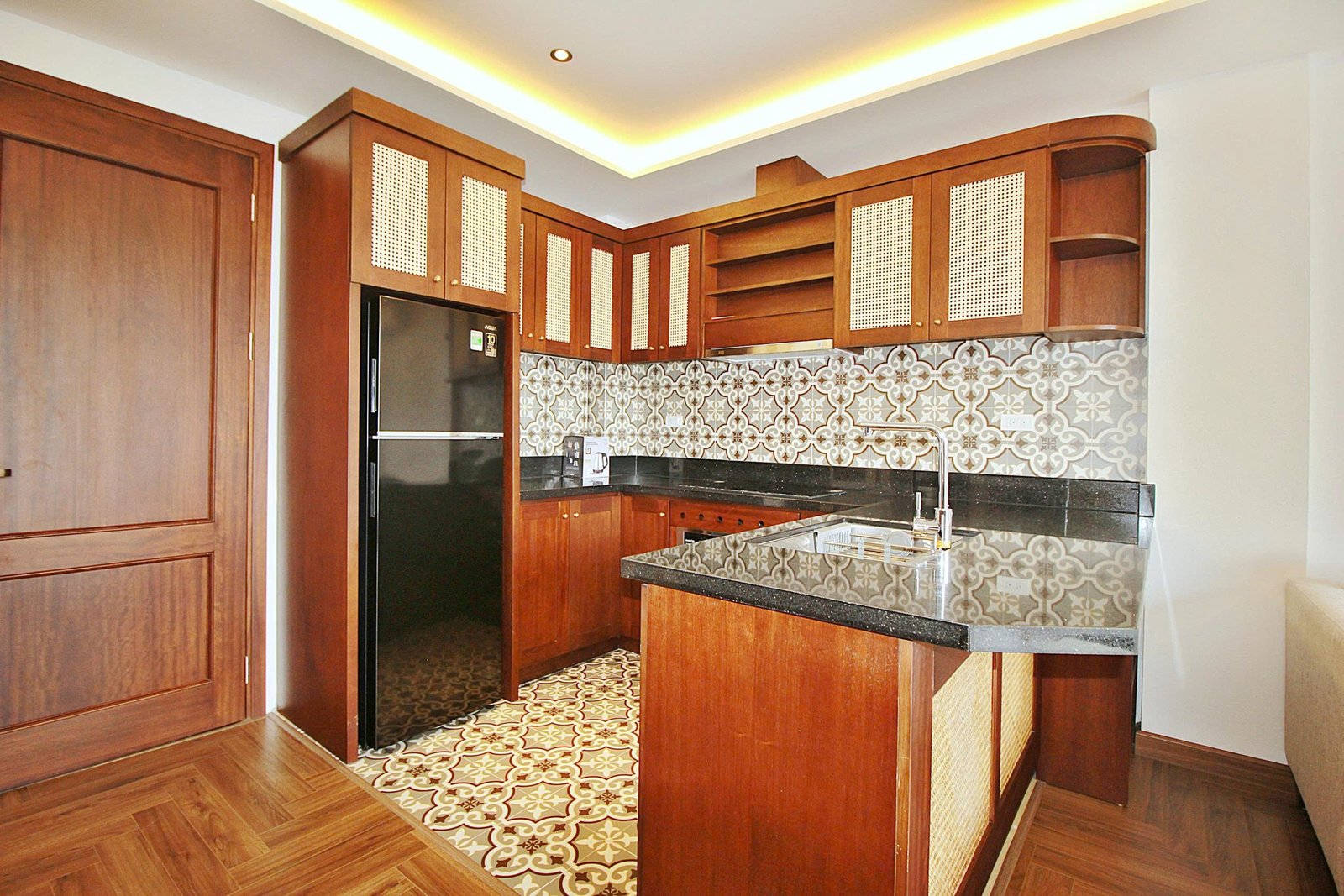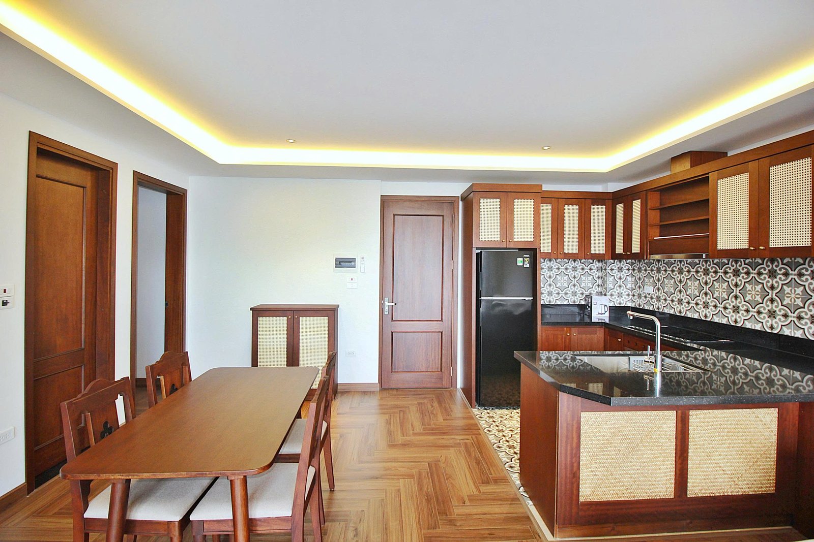 Step into timeless elegance with this Indochine-inspired 2-bedroom apartment, designed with beautiful natural wood finishes and a warm, inviting atmosphere. Located in Tay Ho, it blends traditional charm with modern comfort — perfect for those who appreciate style and functionality.