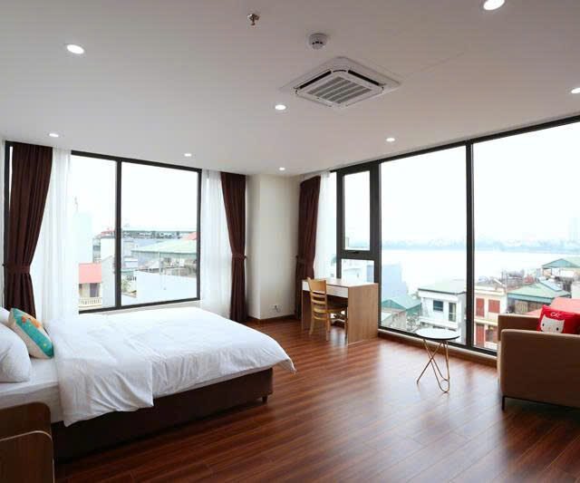 Wake up to breathtaking views of West Lake in this bright and modern 2-bedroom apartment located on Nhat Chieu, Tay Ho. With full-length windows and a spacious balcony, the apartment offers stunning lake views from the living area and main bedroom. The open-plan layout includes a well-equipped kitchen, comfortable lounge, and two generously sized bedrooms—ideal for couples, small families, or professionals sharing. Situated in a peaceful yet central area, you’re just minutes from cafes, restaurants, and the lively expat scene. Fully furnished and ready to move in.