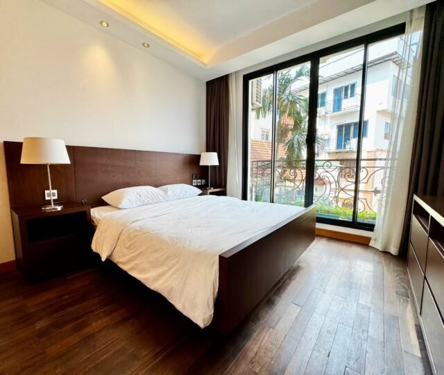 This luxury 2-bedroom apartment at 32 To Ngoc Van, located by the scenic waterfront of West Lake, Hanoi, offers fully serviced living with housekeeping three times per week. Perfect for those seeking elegance and convenience in a serene lakeside setting.