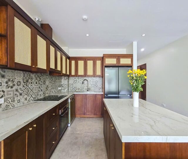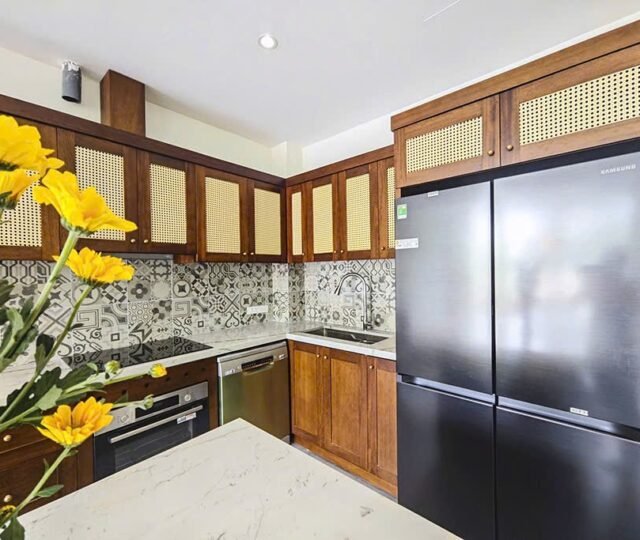 Fully furnished with high-quality natural wood furniture & premium appliances