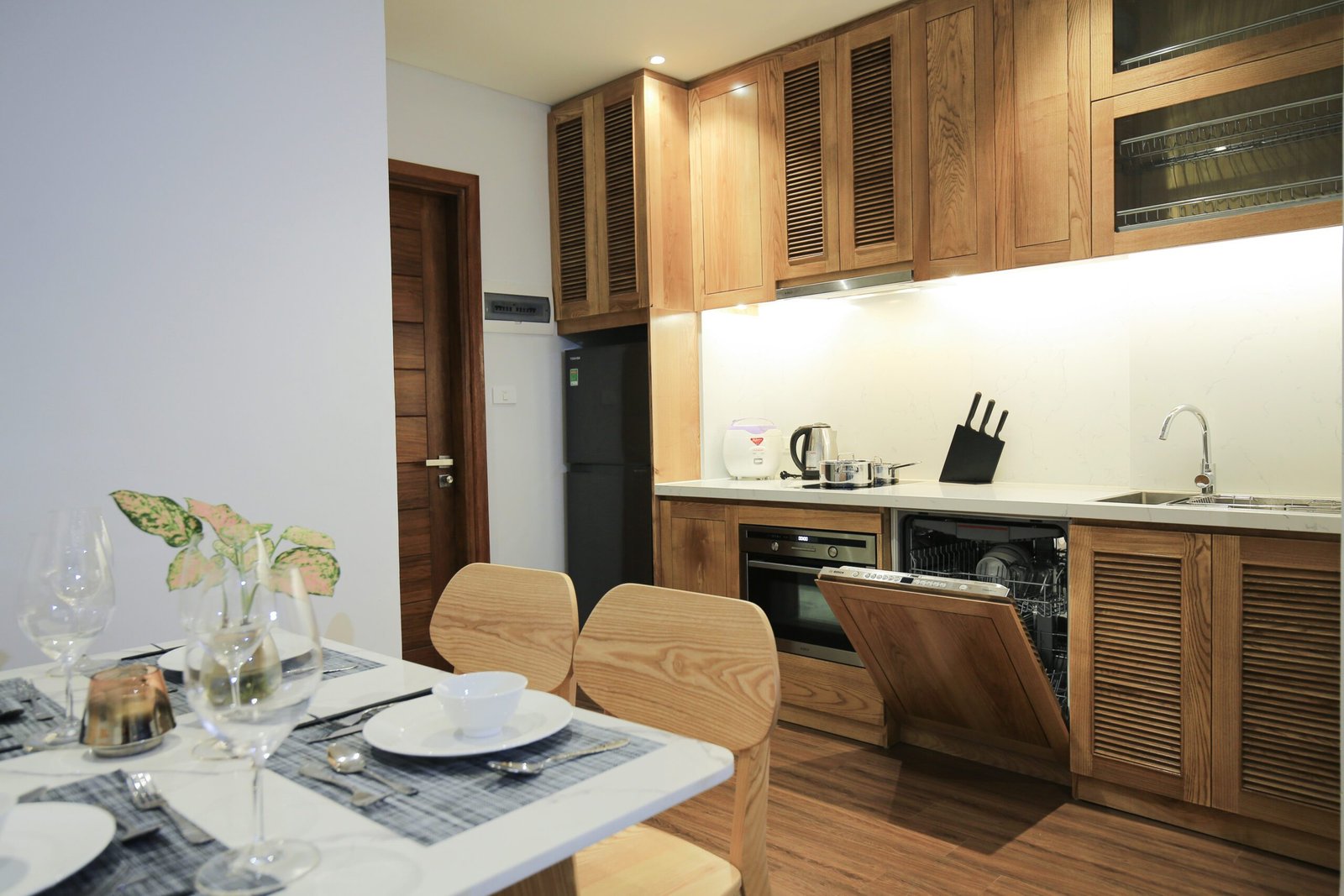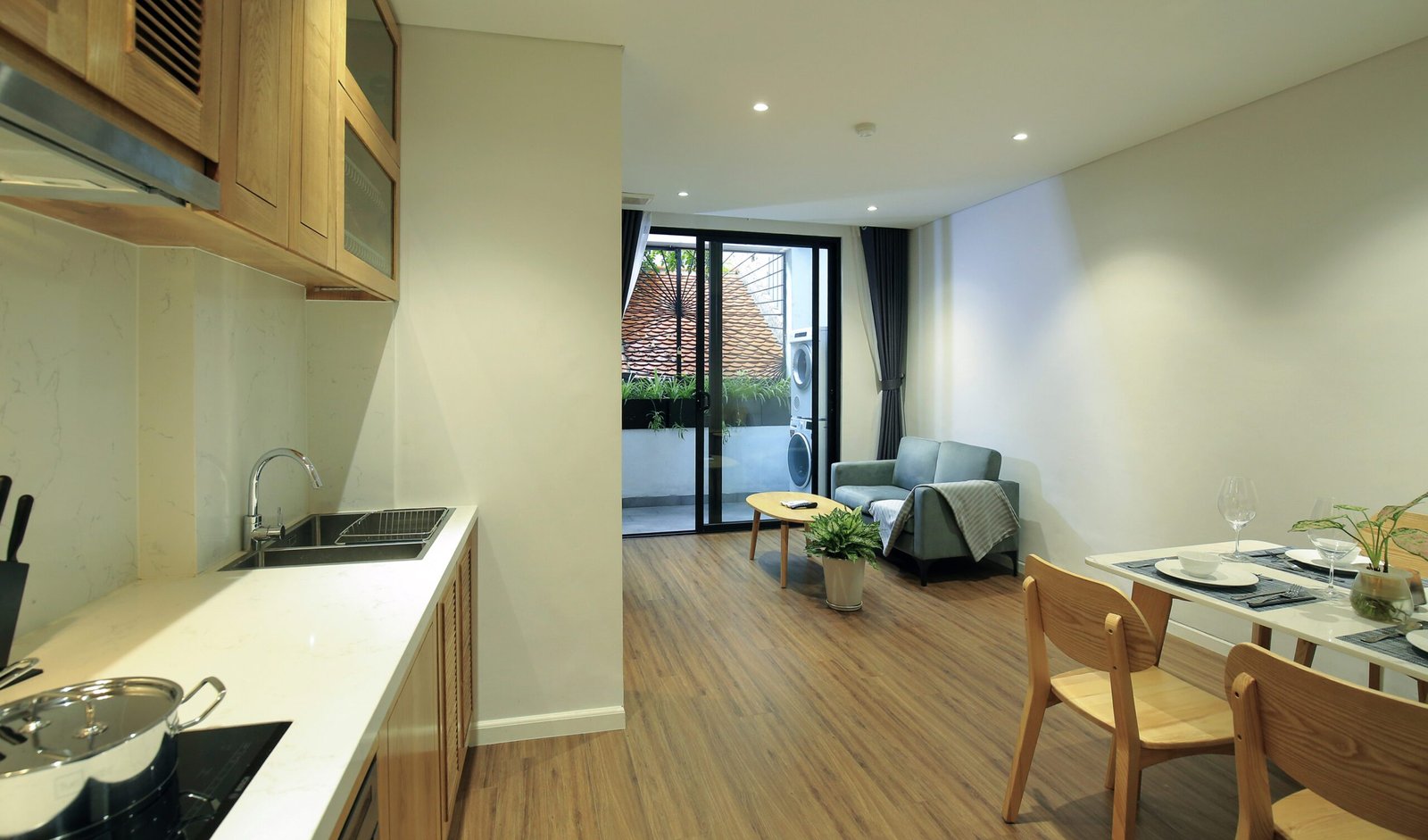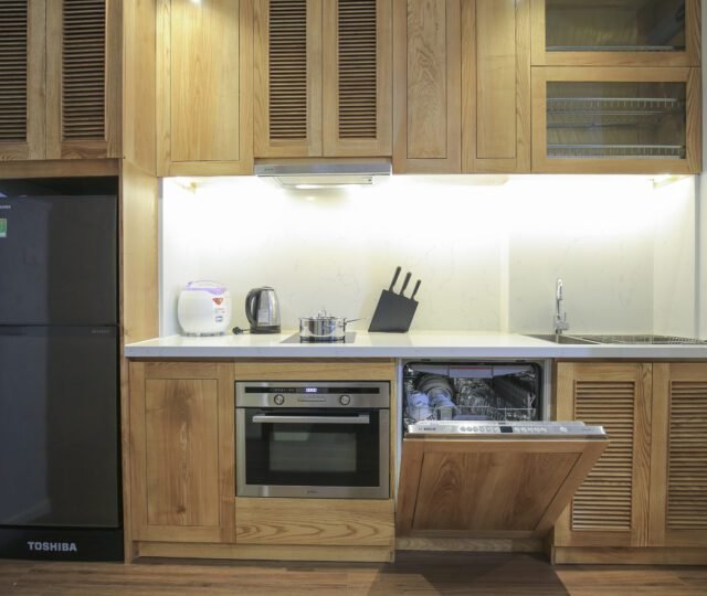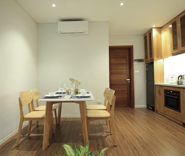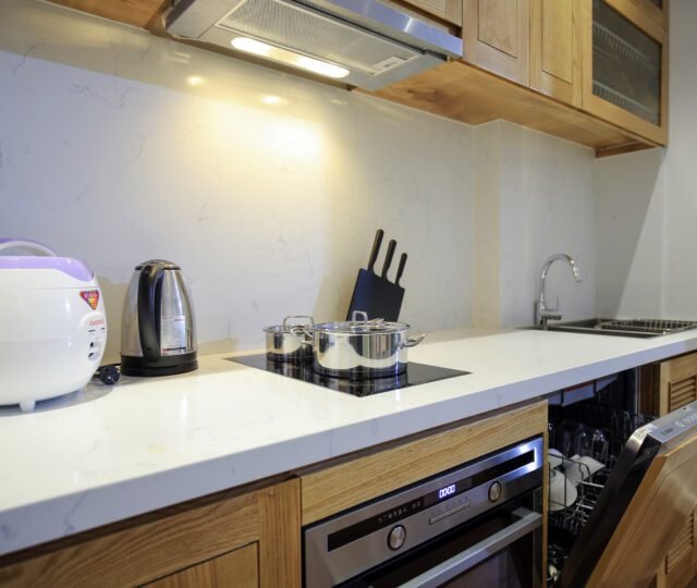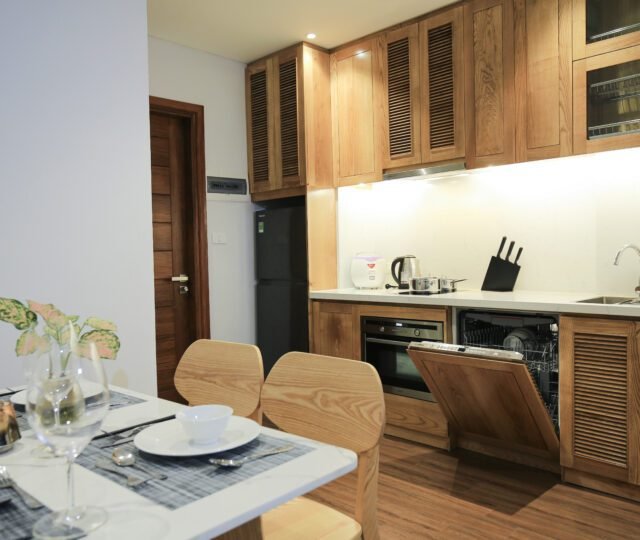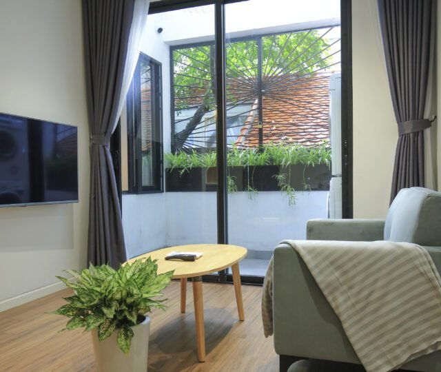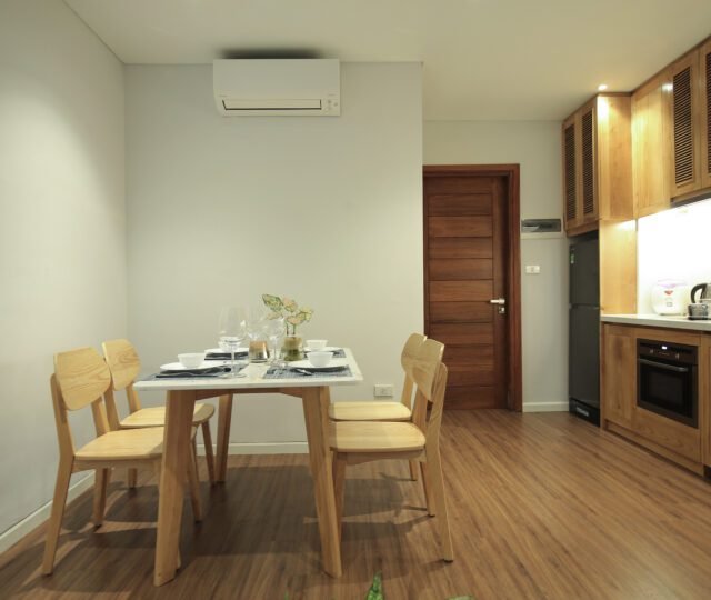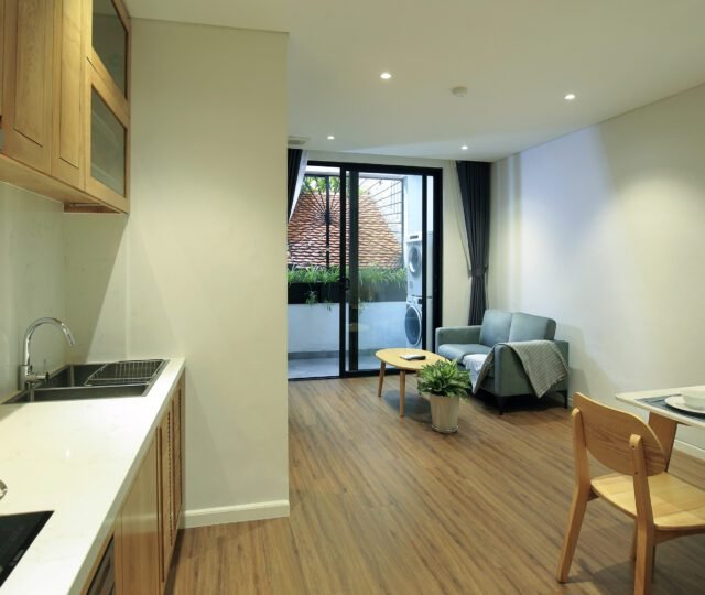 Modern 1-bedroom serviced apartment for rent in Tu Hoa, Quang An. Featuring sleek design, a fully equipped kitchen with a dishwasher, and convenient amenities. Ideal for quick rental – don’t miss out on this sought-after space!