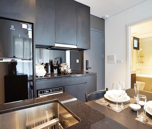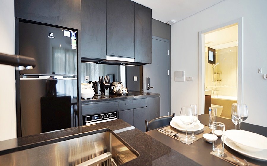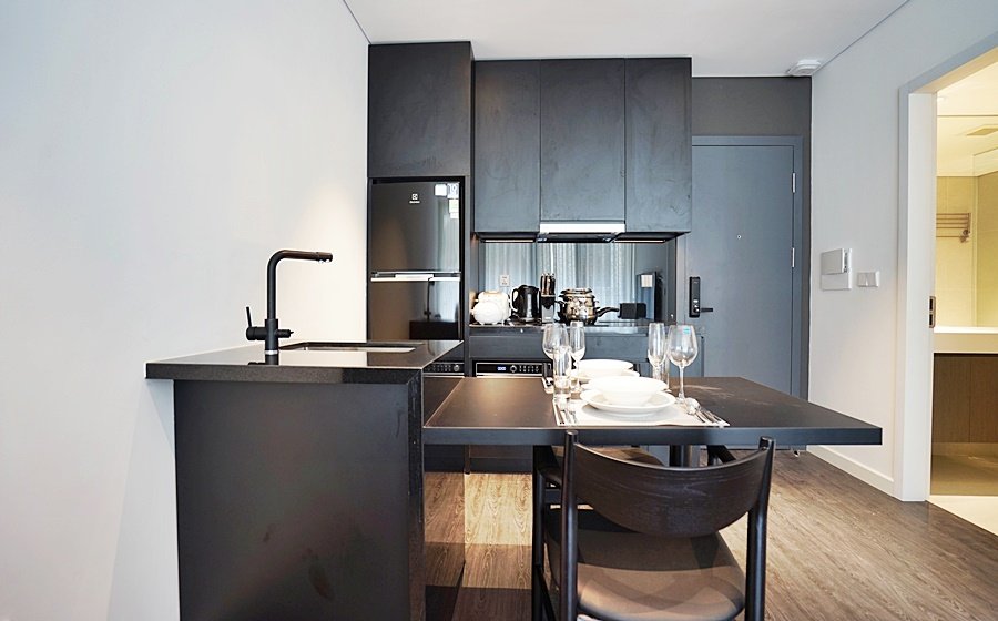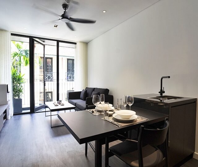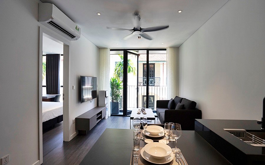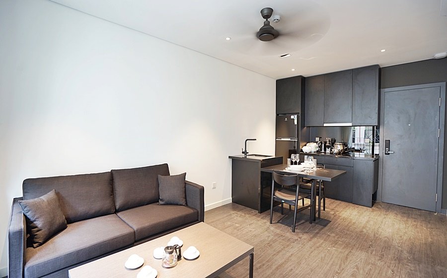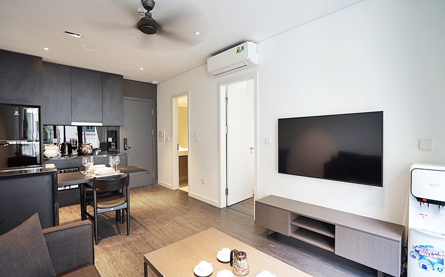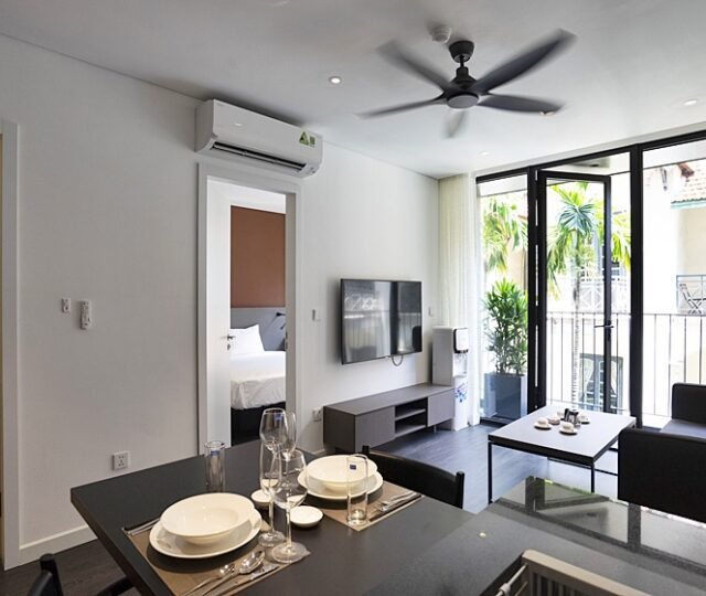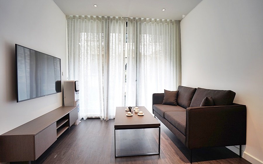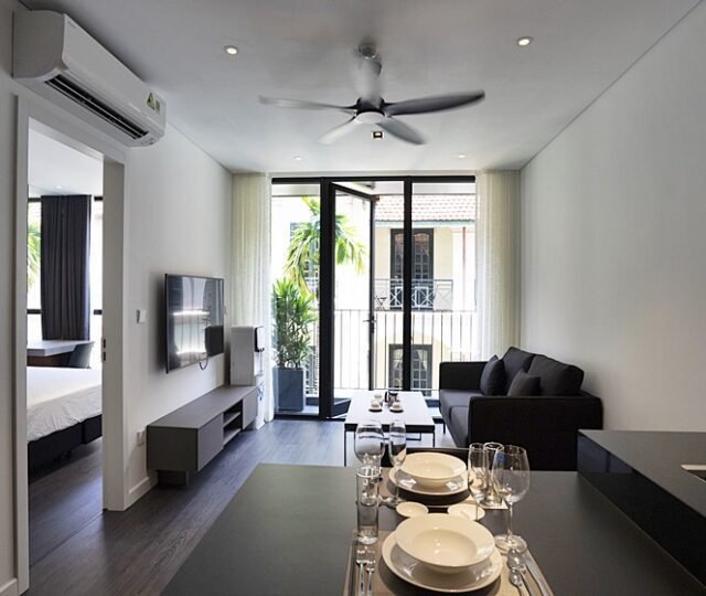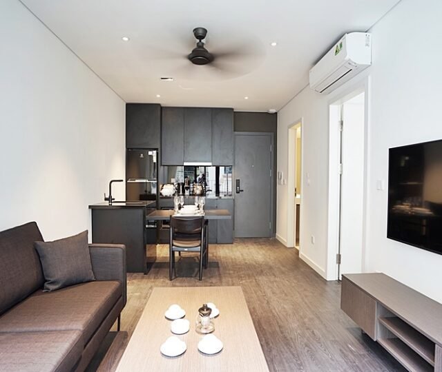 Modern 1-bedroom serviced apartment on To Ngoc Van, Tay Ho—an expat-favorite street known for its cafes, restaurants, and walkable access to West Lake. Fully furnished with stylish interiors, high-speed internet, cable TV, housekeeping, 24/7 security, and basement motorbike parking.