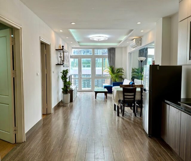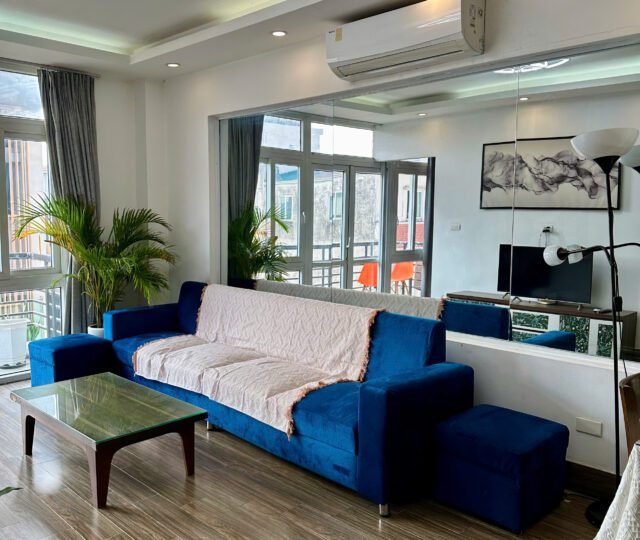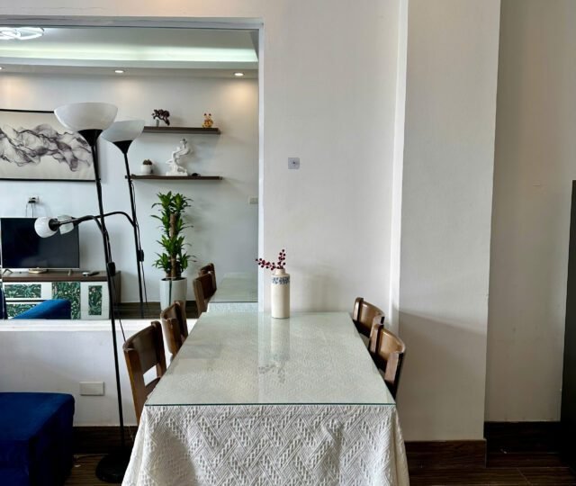 Modern 2-bedroom serviced apartment on To Ngoc Van, Tay Ho, Hanoi. Fully furnished with spacious interiors, natural light, and convenient amenities, including housekeeping. Ideal for expats or families seeking comfort in a prime location near cafes and shops.