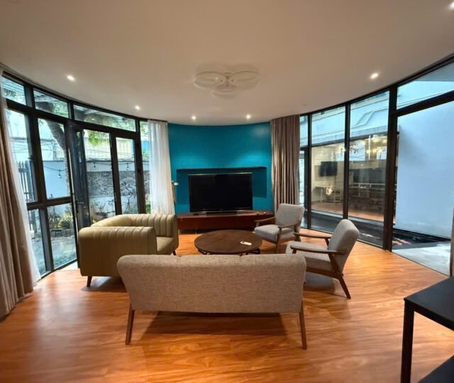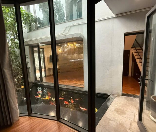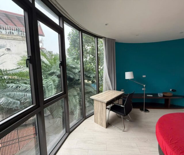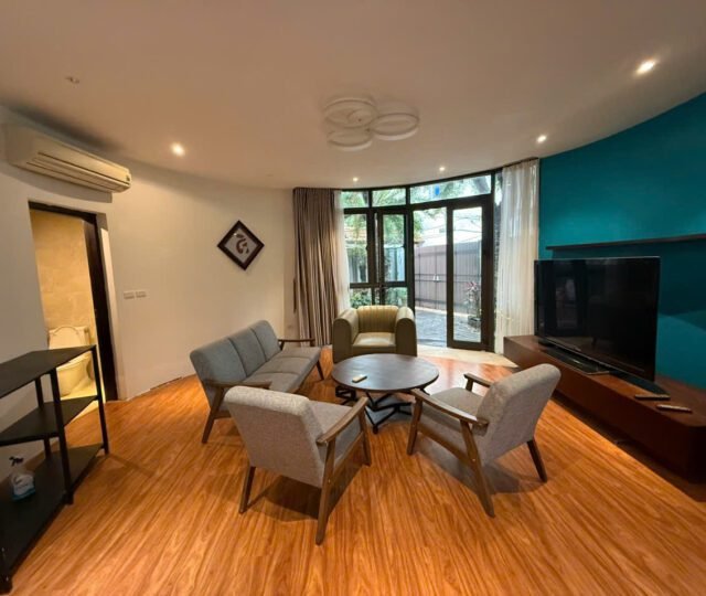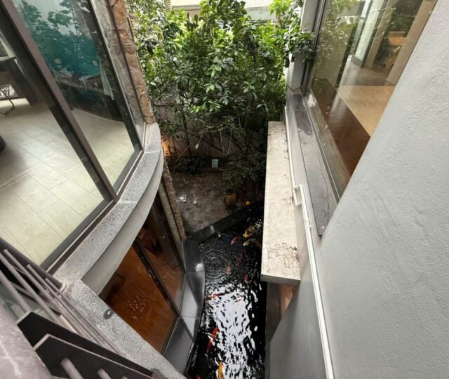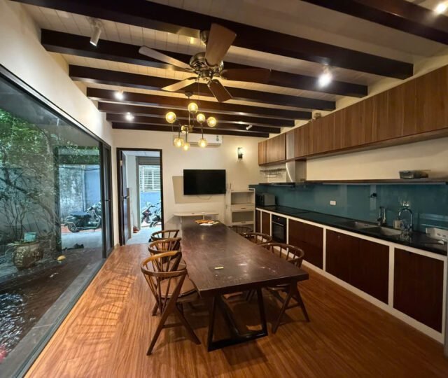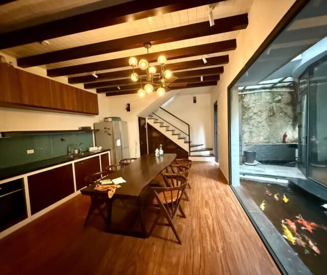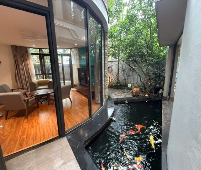 Charming 3-bedroom house in Tay Ho with a lush garden, large terrace with lake view, koi pond, and spacious Western kitchen. Located in a peaceful neighborhood, just steps from shops, gyms, and expat-friendly services