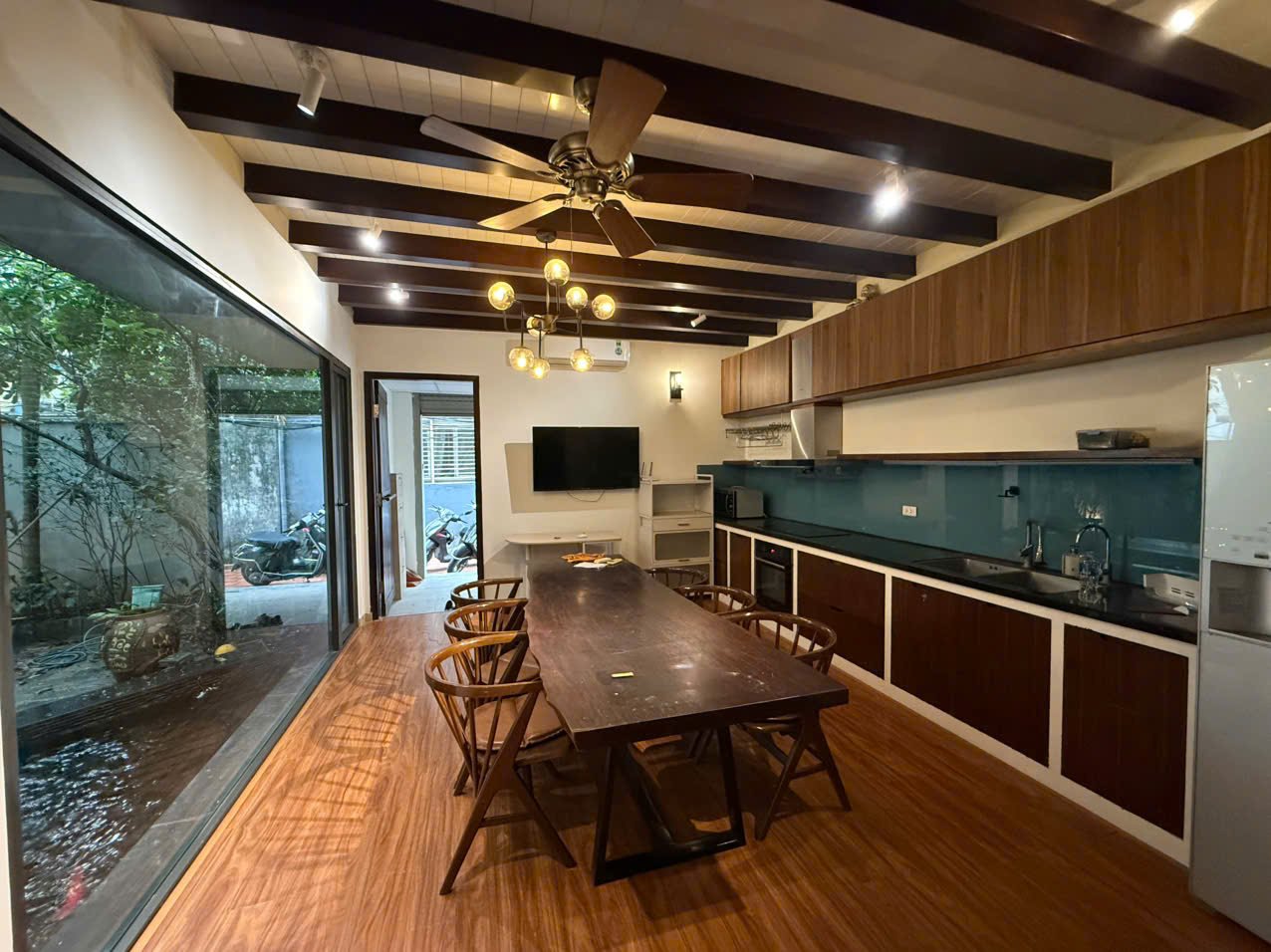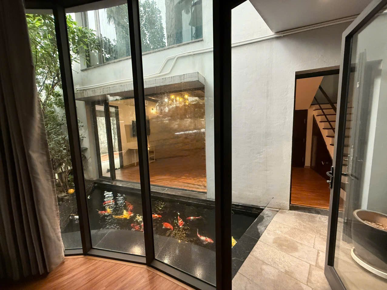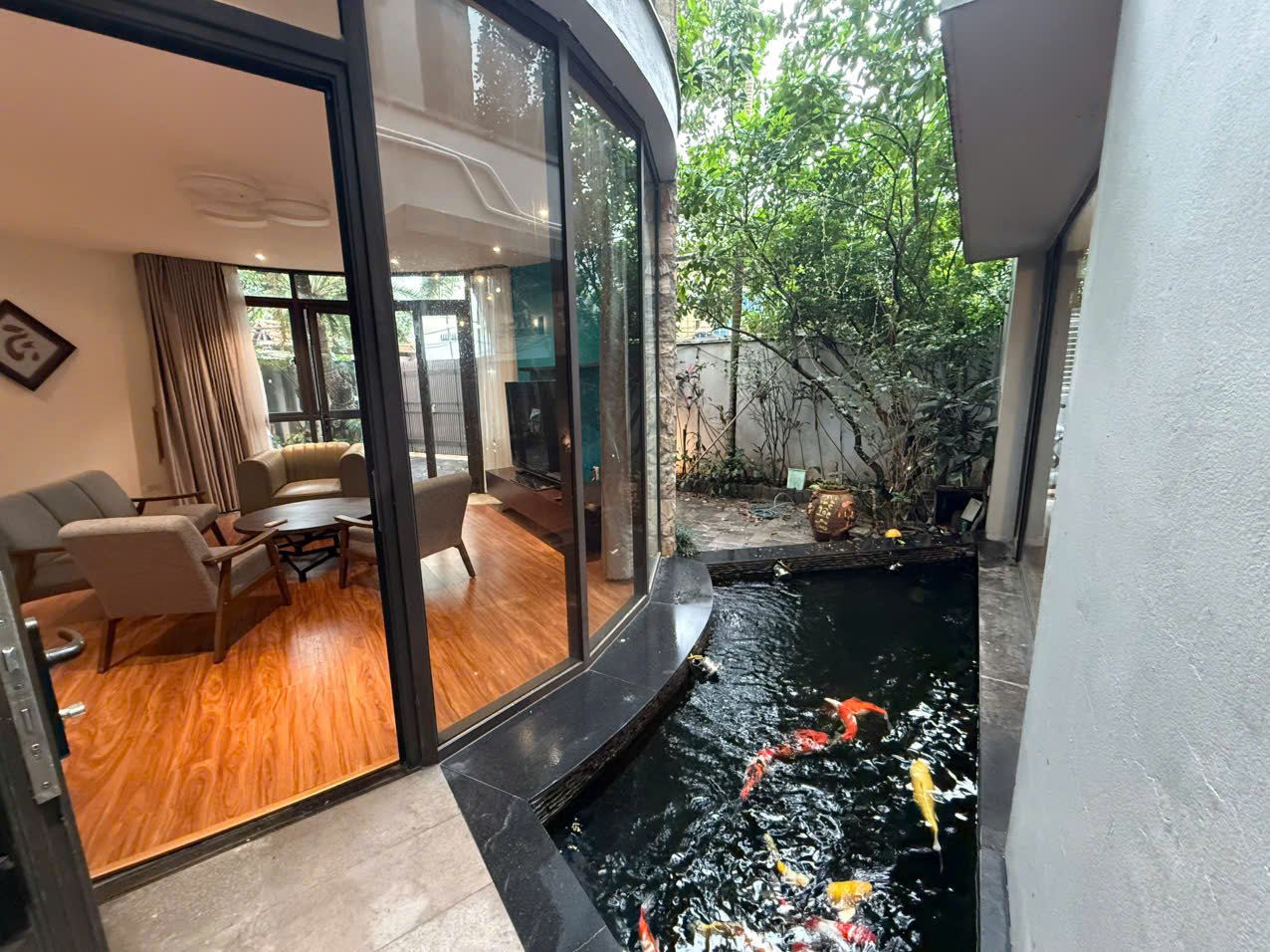 Charming 3-bedroom house in Tay Ho with a lush garden, large terrace with lake view, koi pond, and spacious Western kitchen. Located in a peaceful neighborhood, just steps from shops, gyms, and expat-friendly services