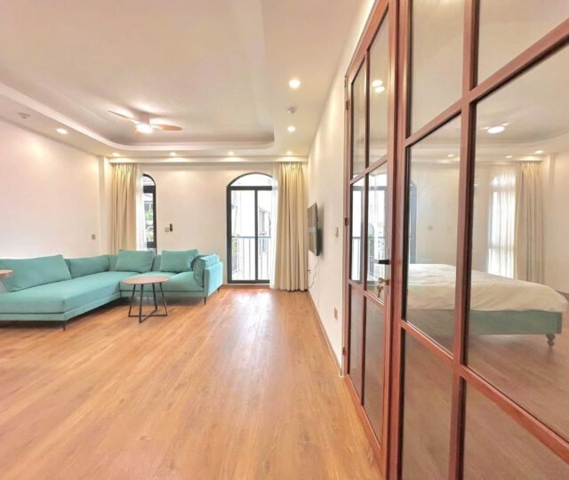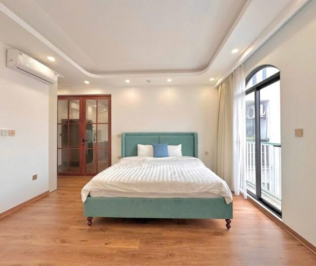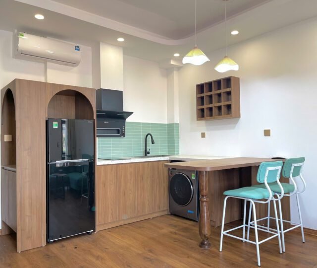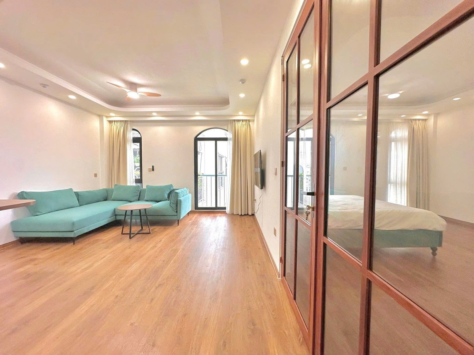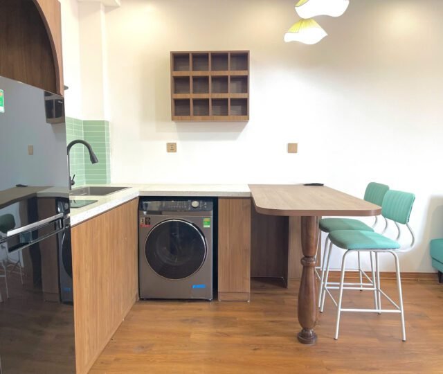 Modern, brand new serviced apartment on Vu Mien, Yen Phu with gorgeous design, stylish furnishings, and plenty of natural light. A beautifully finished space in a peaceful corner of Tay Ho.